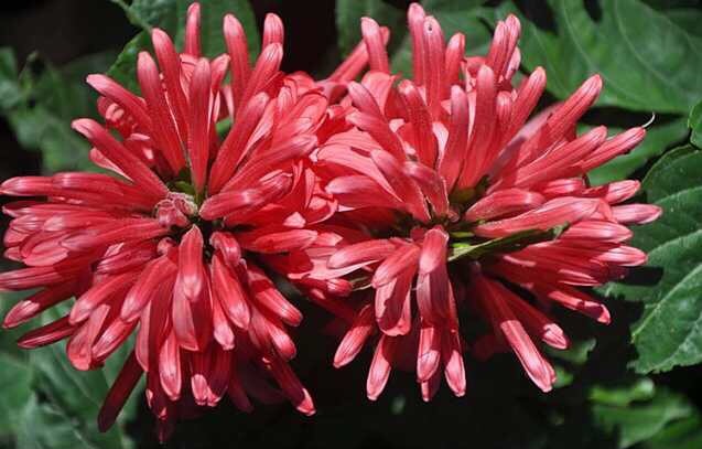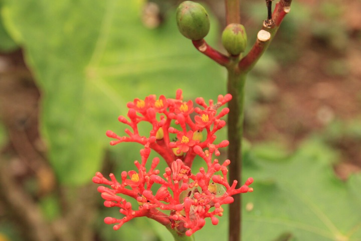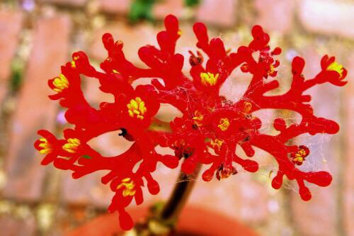 珊瑚花(Jatropha multifida L.),又名巴西羽花,为多年生常绿亚灌木。花密集形成短圆锥花序,顶生,花玫瑰紫色或粉红色,花期6~8月。本种形、色均似珊瑚,鲜艳雅致,适合装饰居室。喜向阳和温暖湿润环境,不耐寒,宜富含腐殖质,排水通畅的沙质壤土。