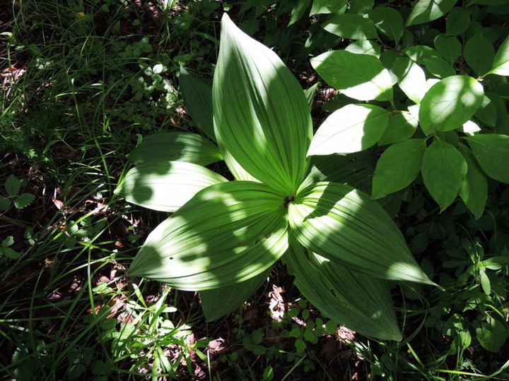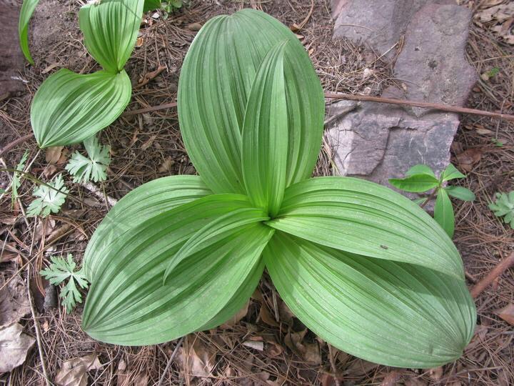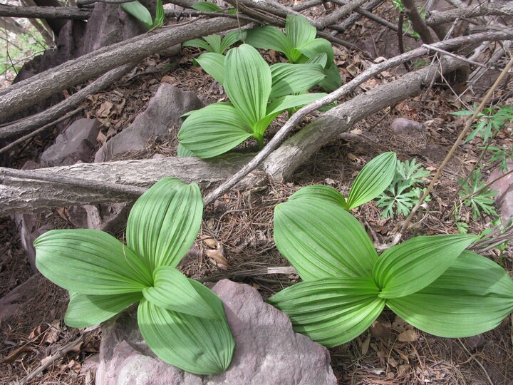 藜芦(学名:Veratrum nigrum L.):百合科藜芦属的植物,多年生草本;根茎短而厚;茎具叶,基部常有残存叶鞘裂成纤维状;叶通常阔,抱茎。