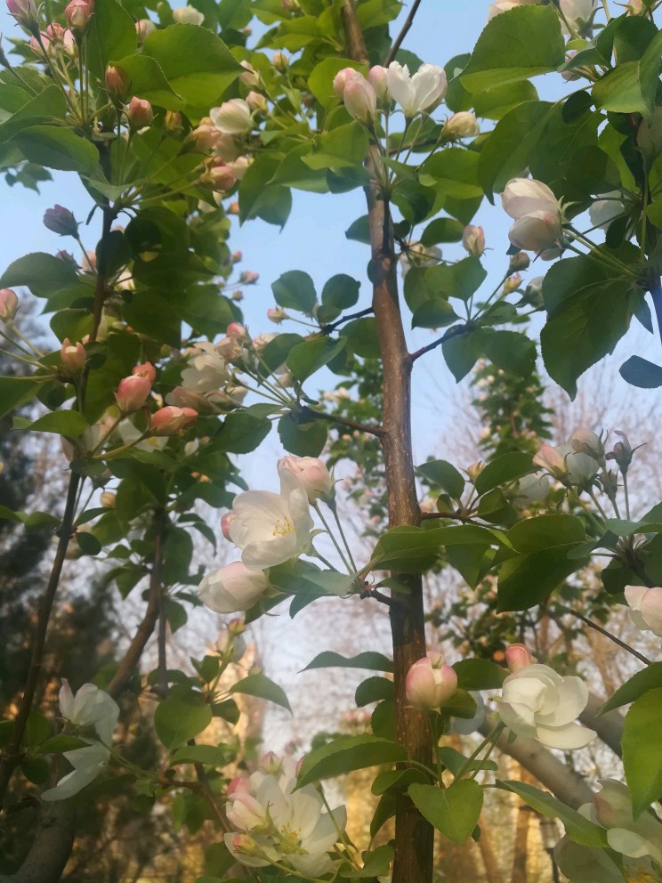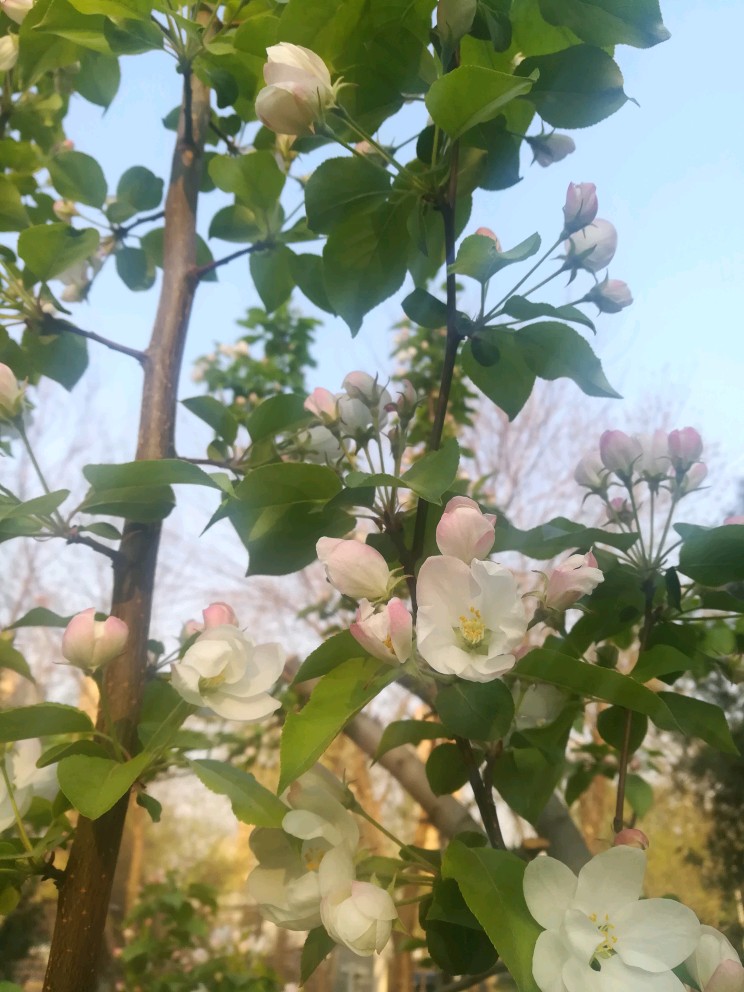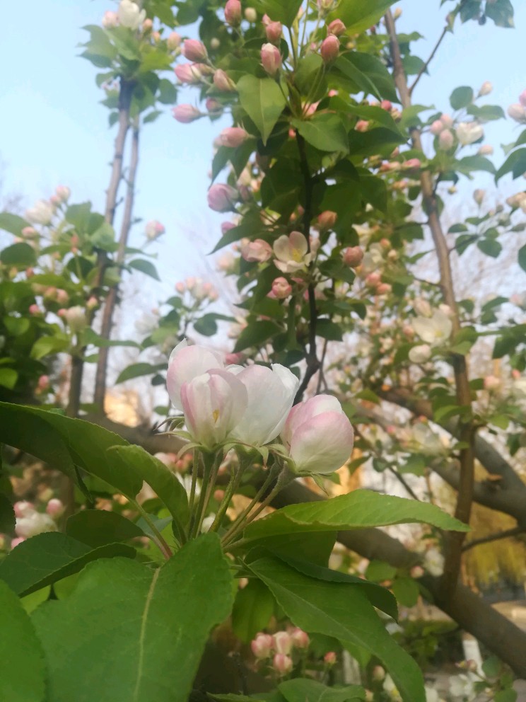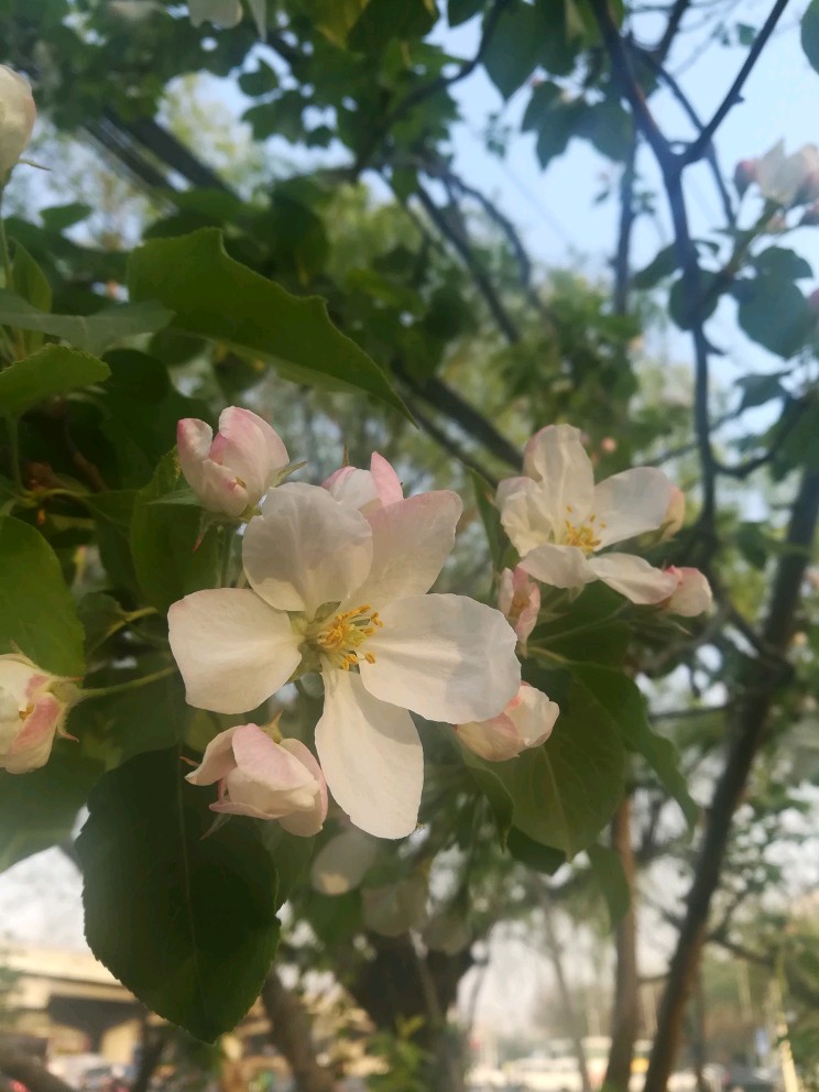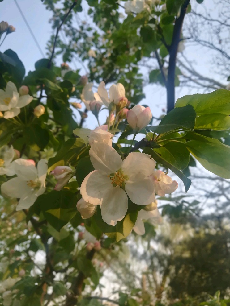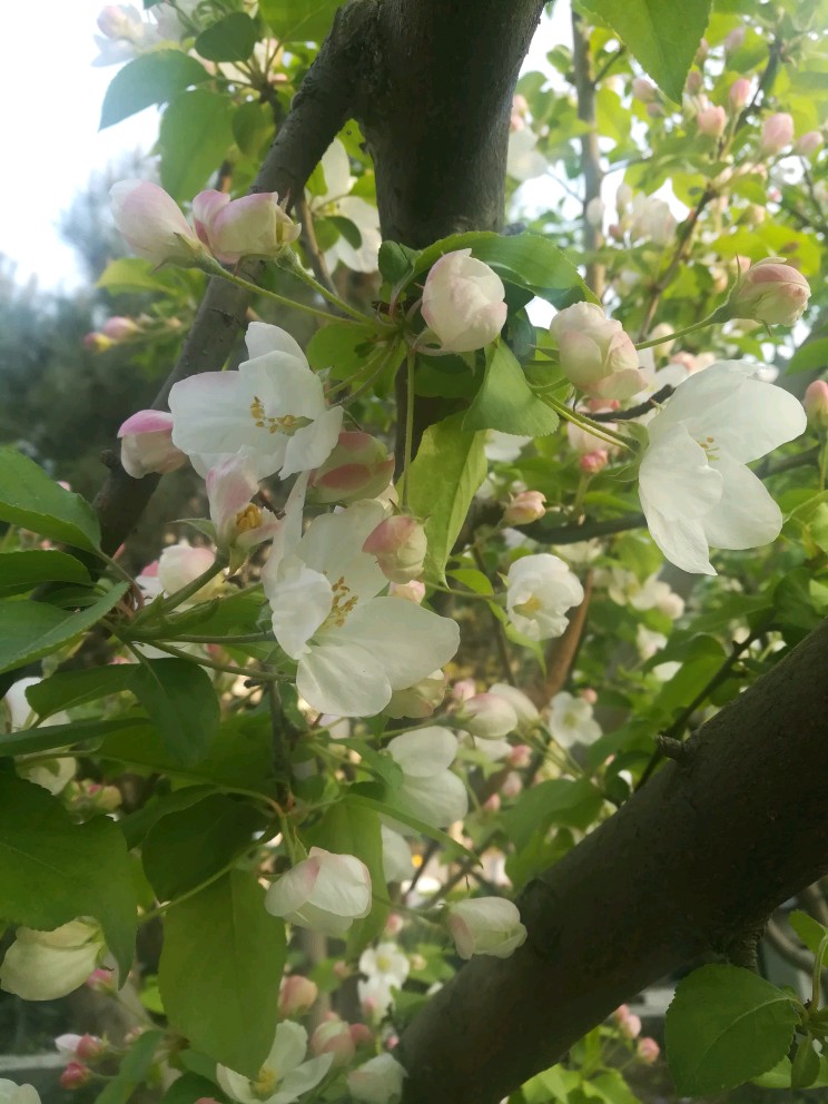 气质神似西府海棠,可花苞颜色稍淡,花儿开了之后更是像直接的纯白了