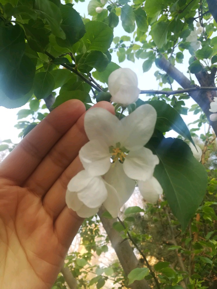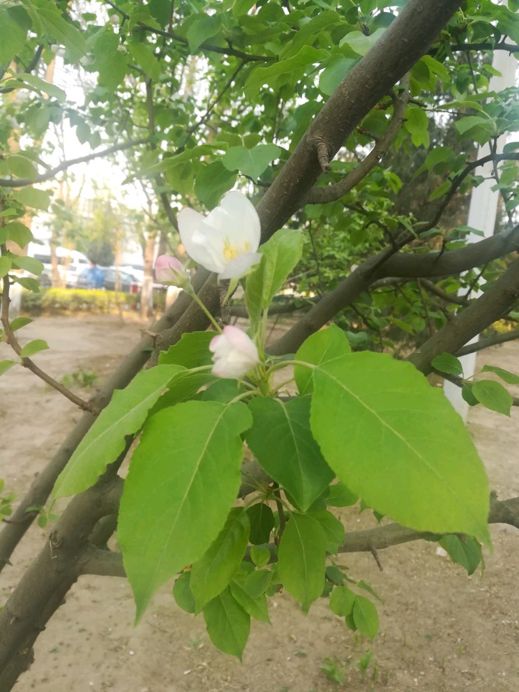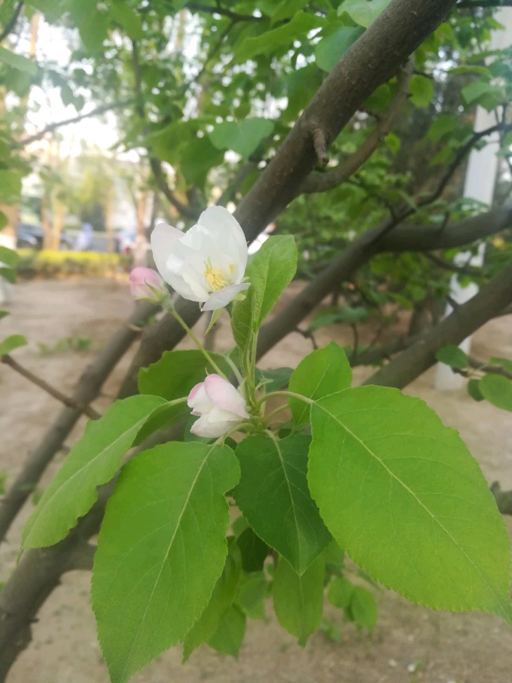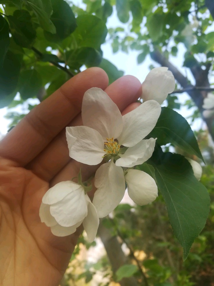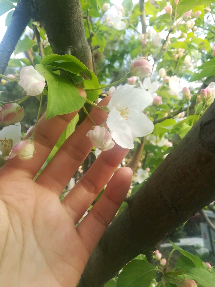 花儿不小,比了比,跟几根手指一般大,好像也比西府海棠大些
