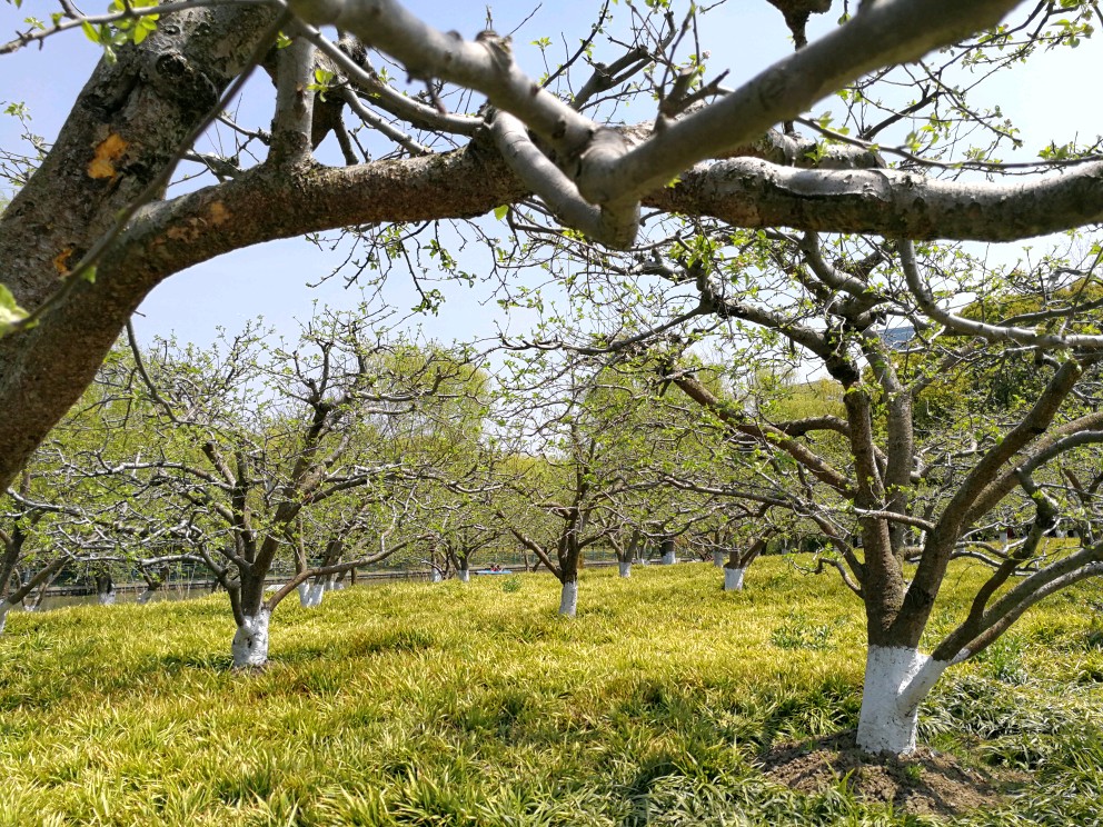:这是公园里的苹果树,我在想秋天苹果熟了后去哪里了。