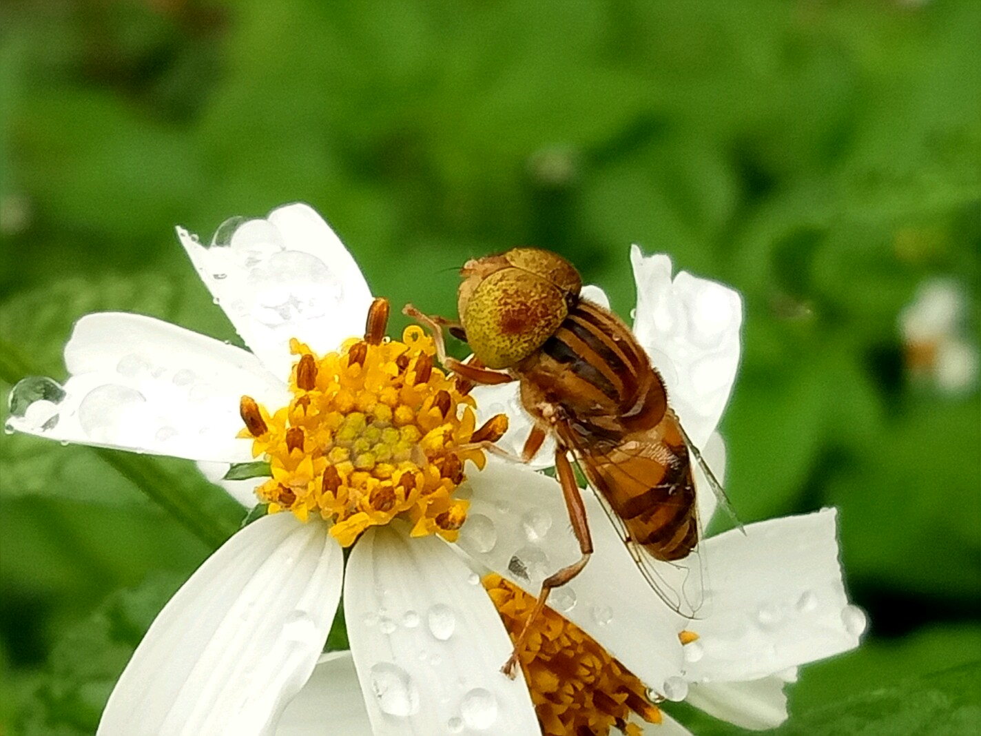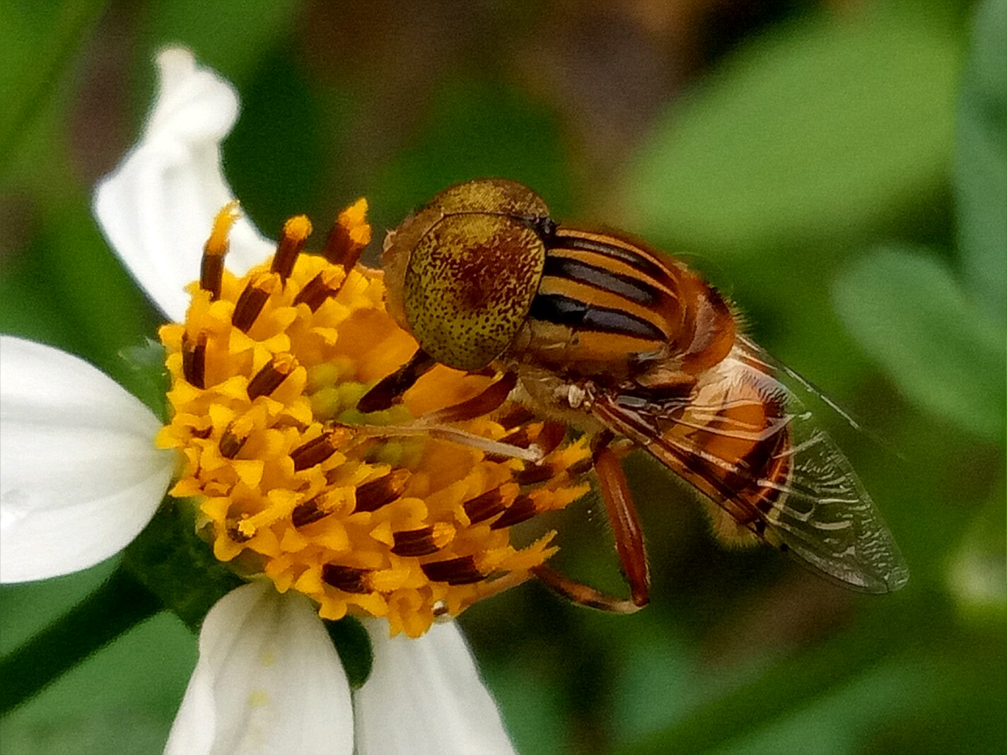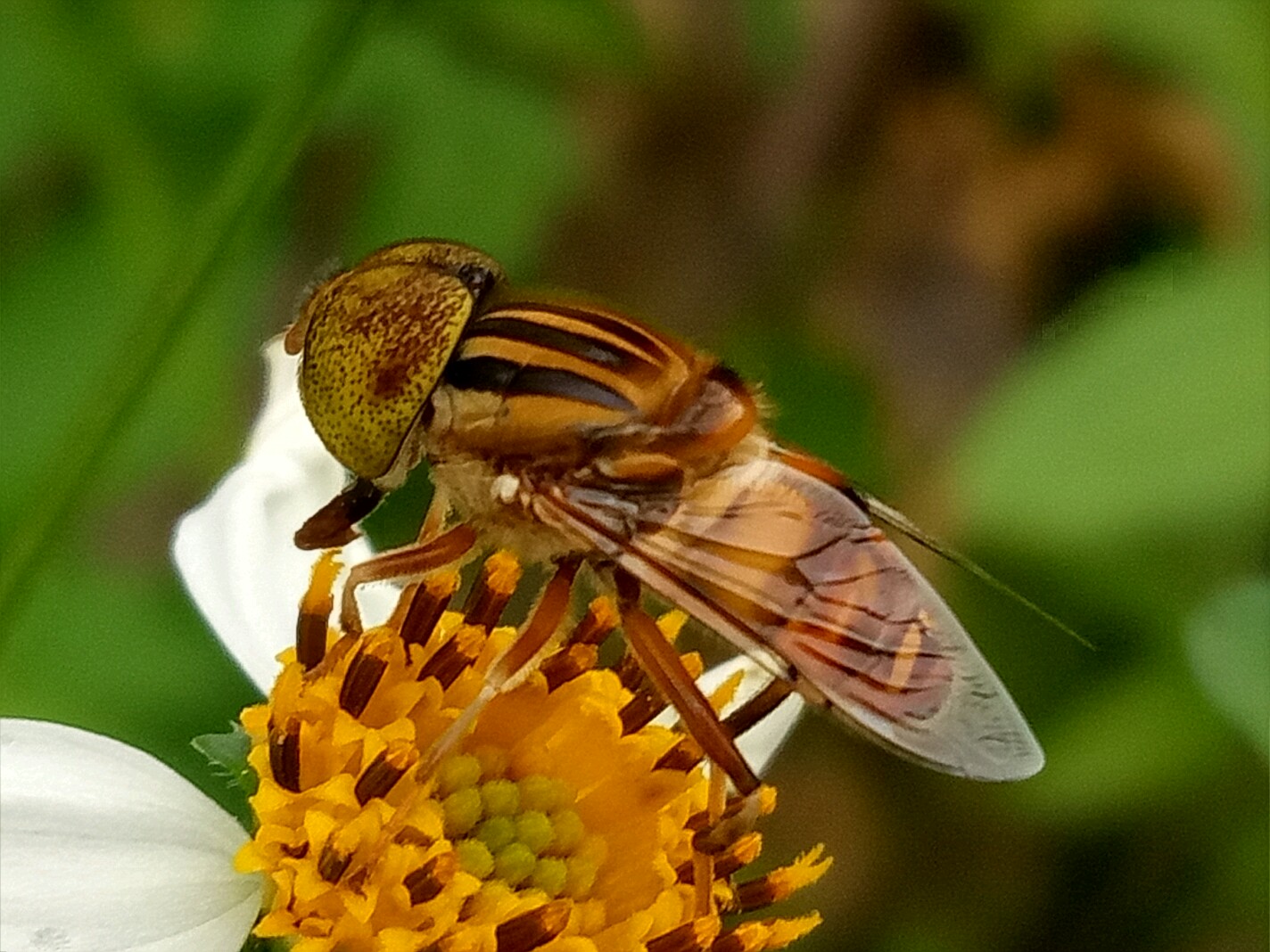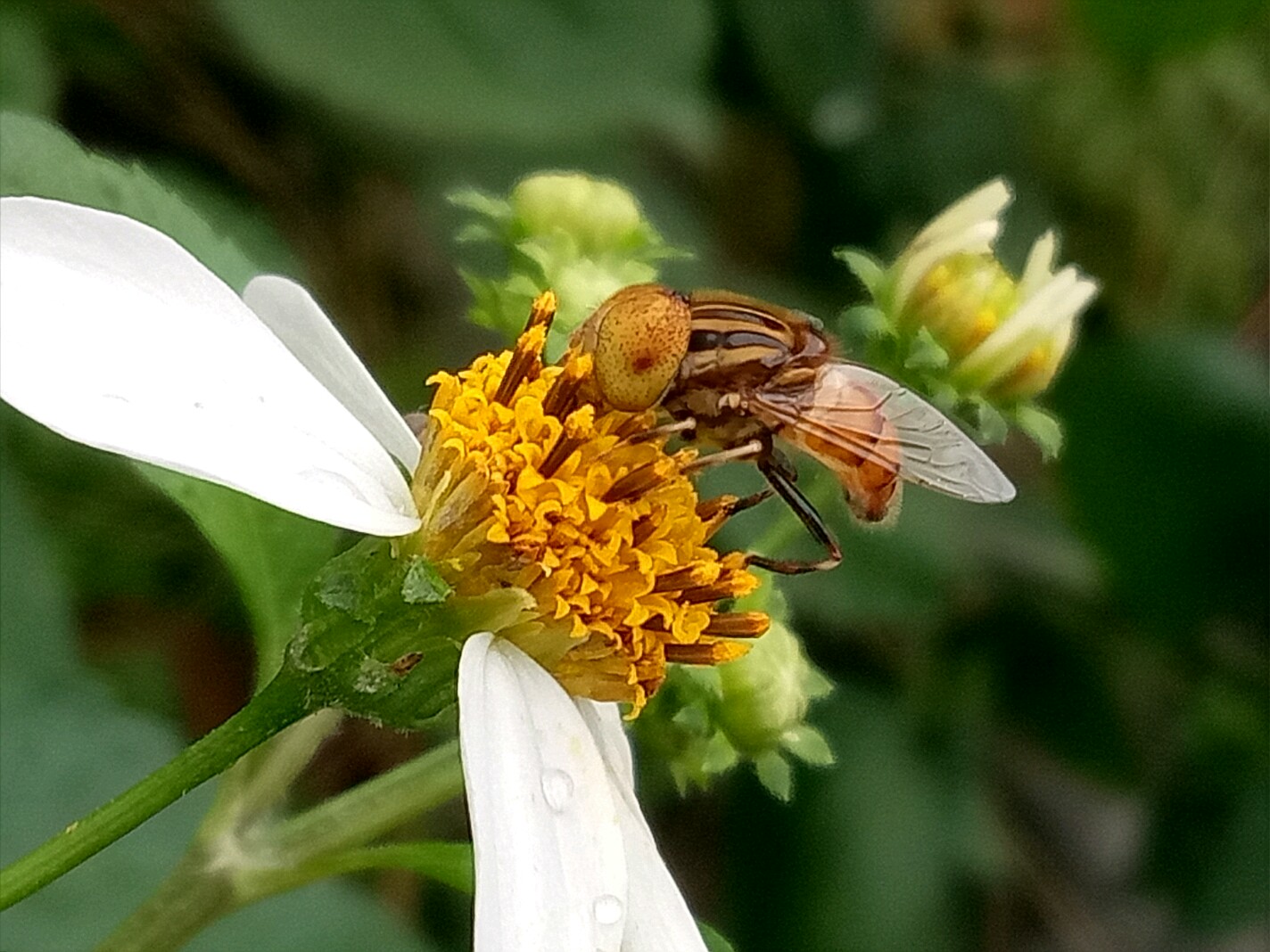 斑眼食蚜蝇喜欢白天在花丛中吸食花蜜。