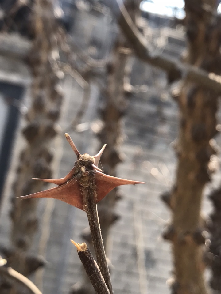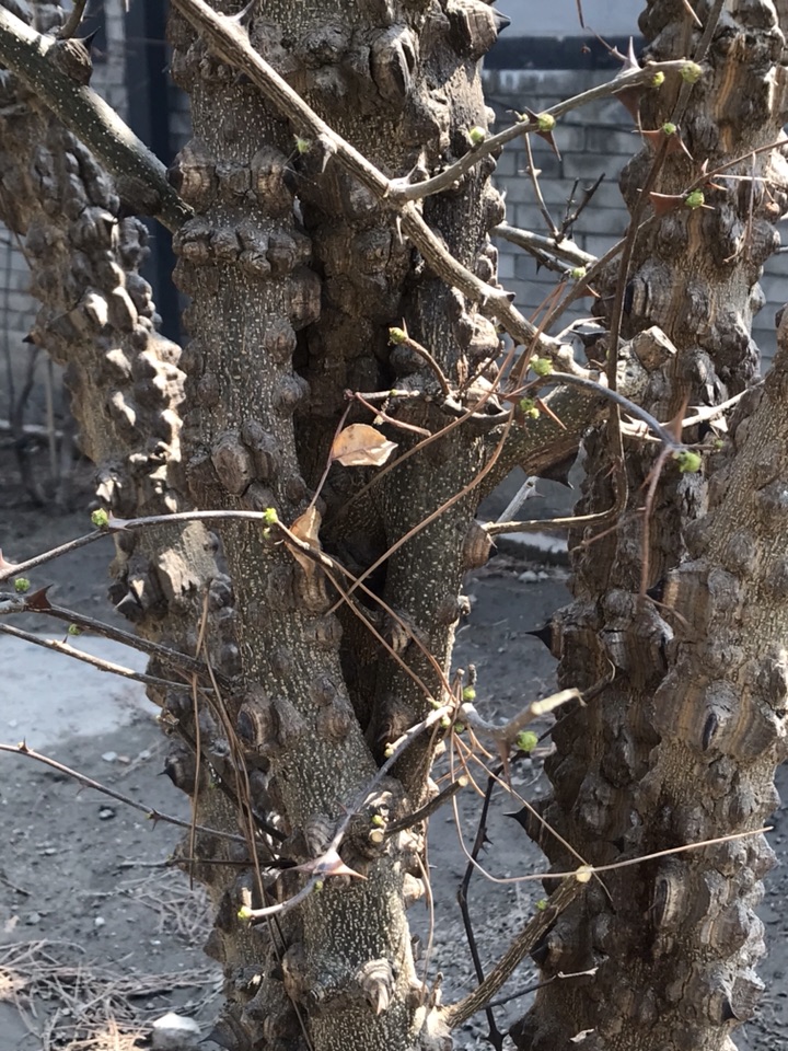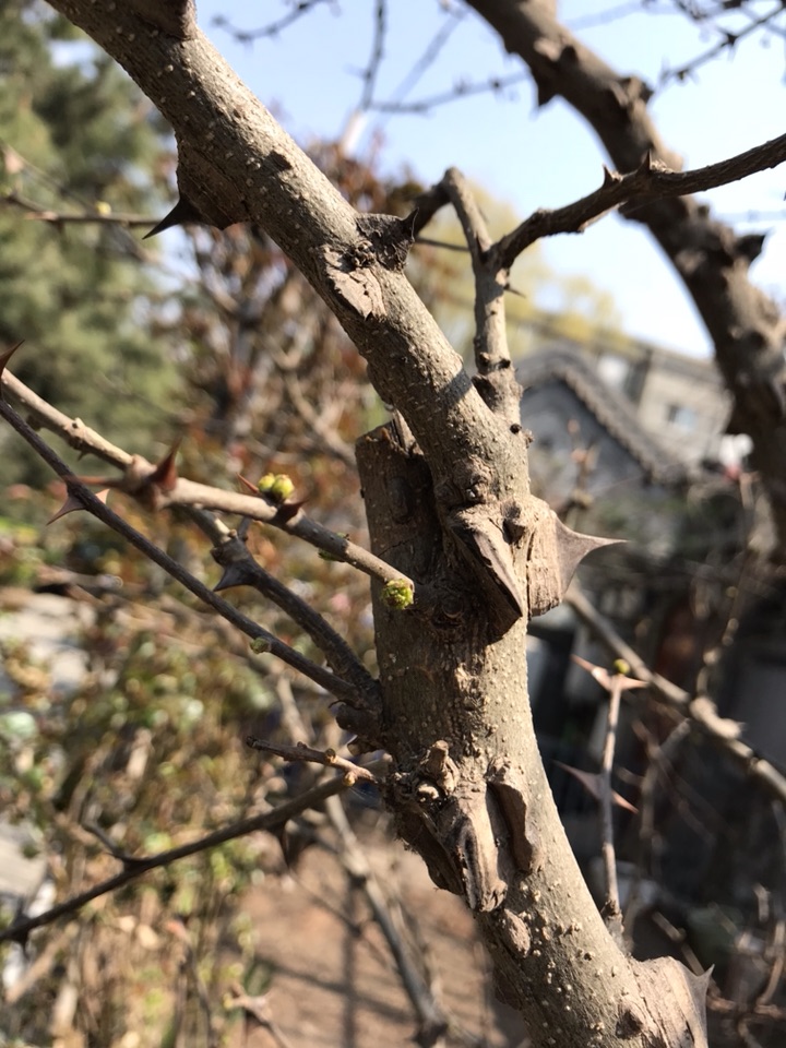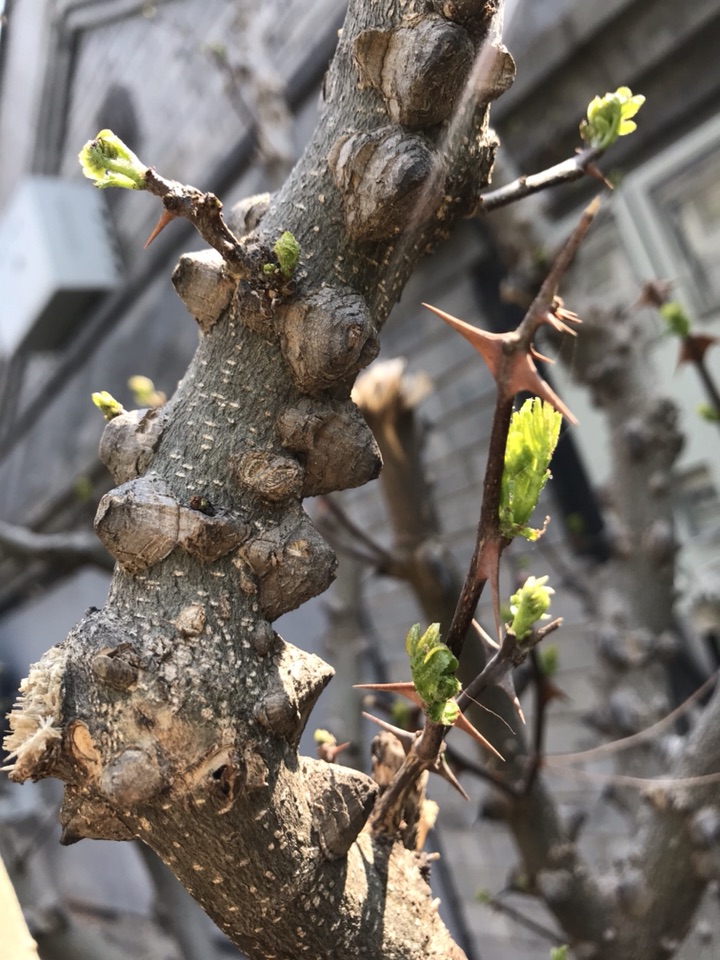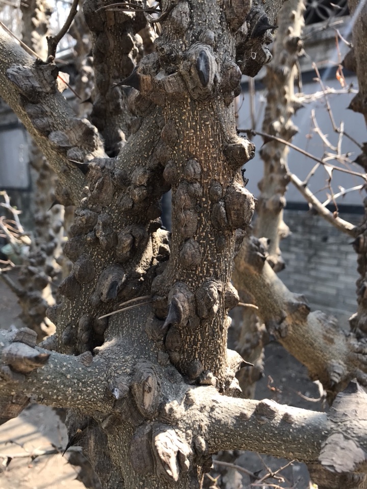 一开始吸引我的便是这些尖锐的刺了,之后便是布满疙瘩充满岁月痕迹的枝干了。