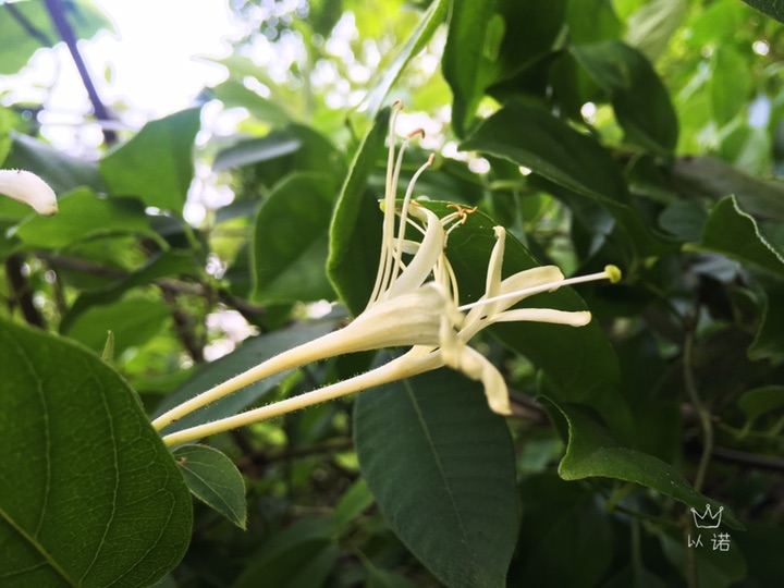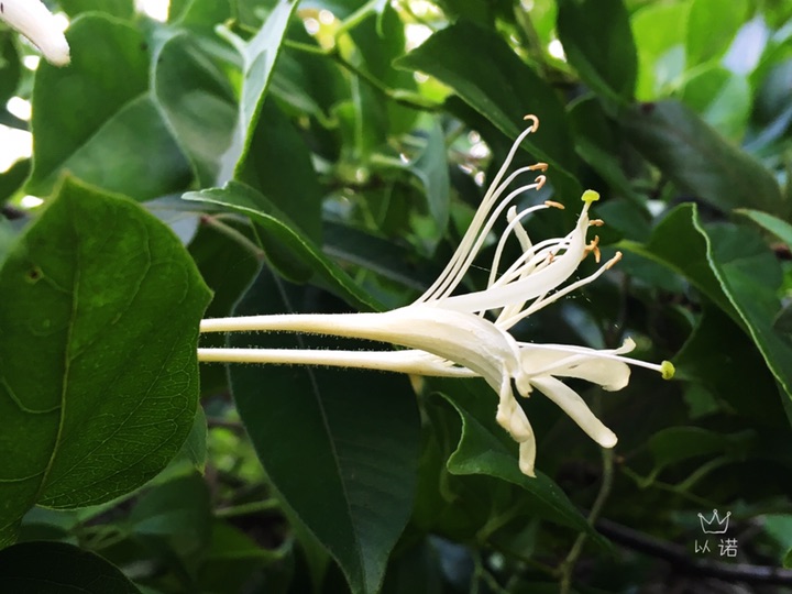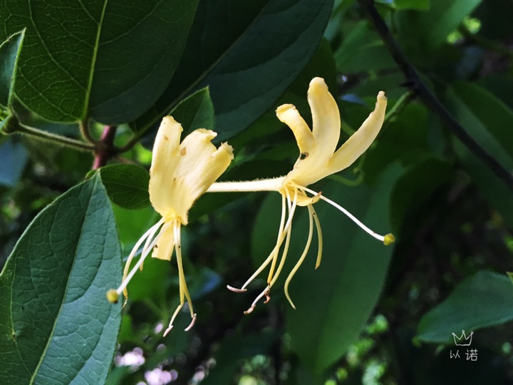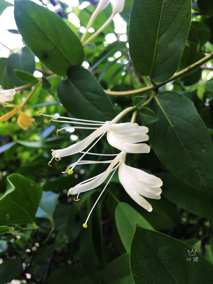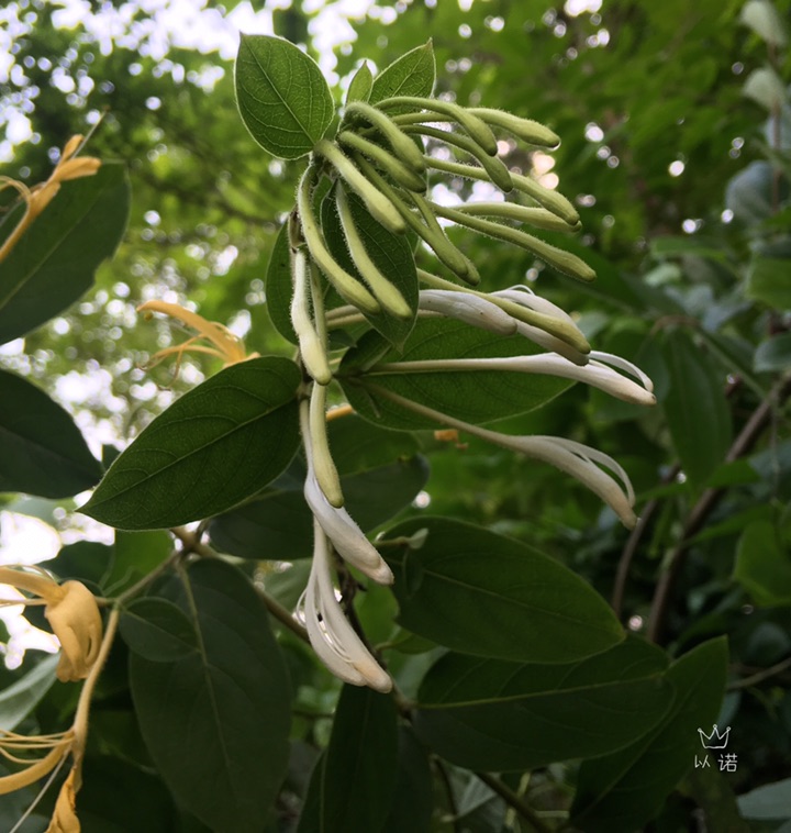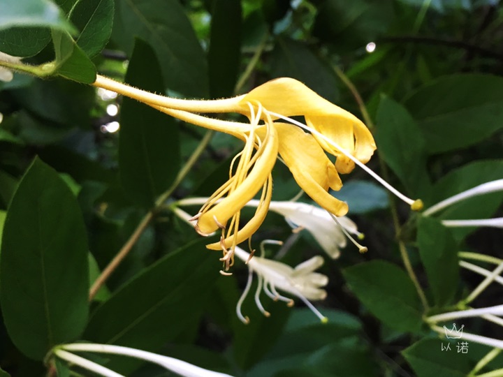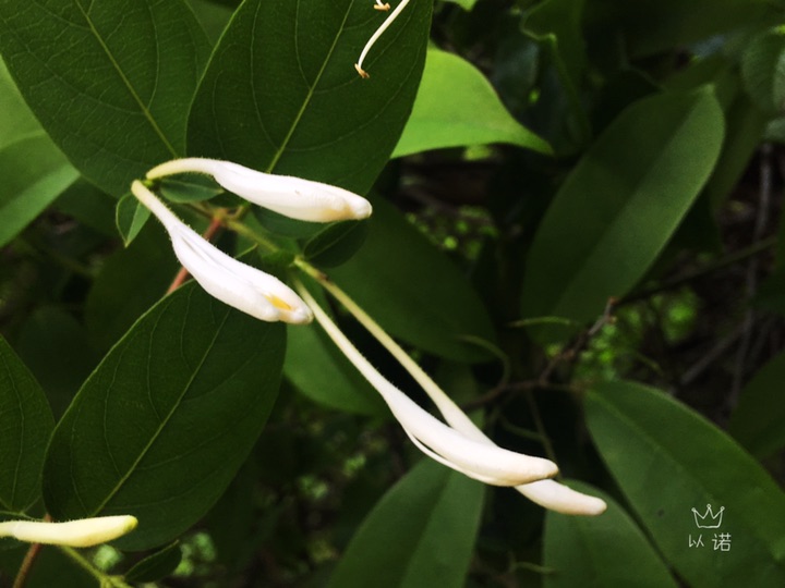 金银花,美好爱情的象征,有诗云:“天地细蕴夏日长,金银两宝结鸳鸯,山盟不以风霜改,处处同心岁岁香。”因此它还有一个美丽的名字“鸳鸯花”,它的花语是鸳鸯成对、诚实的爱、真爱。