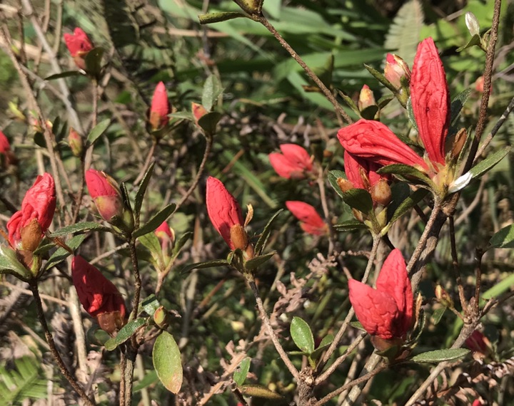 春和景明,正是杜鹃花开时节。这次在山上,看到了各种颜色的野生山杜鹃,也看到了高达十米的乔木杜鹃花,很是大开眼界。