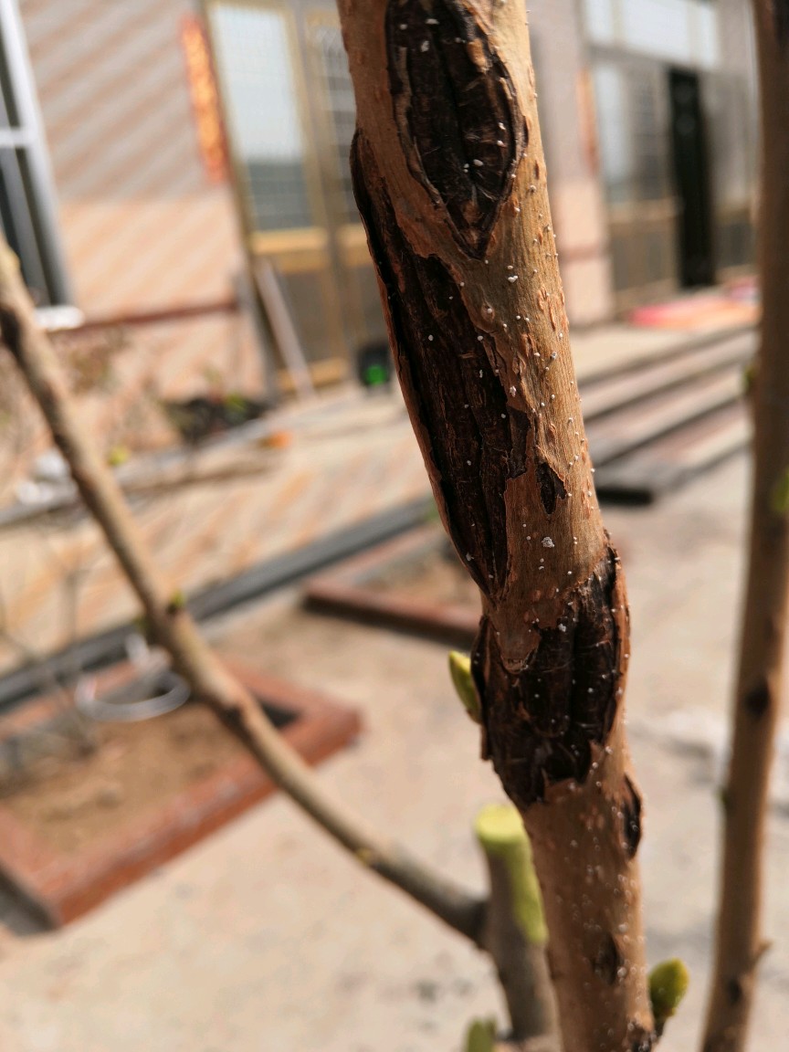 柿子树树枝树干上的裂伤是什么原因造成的???
