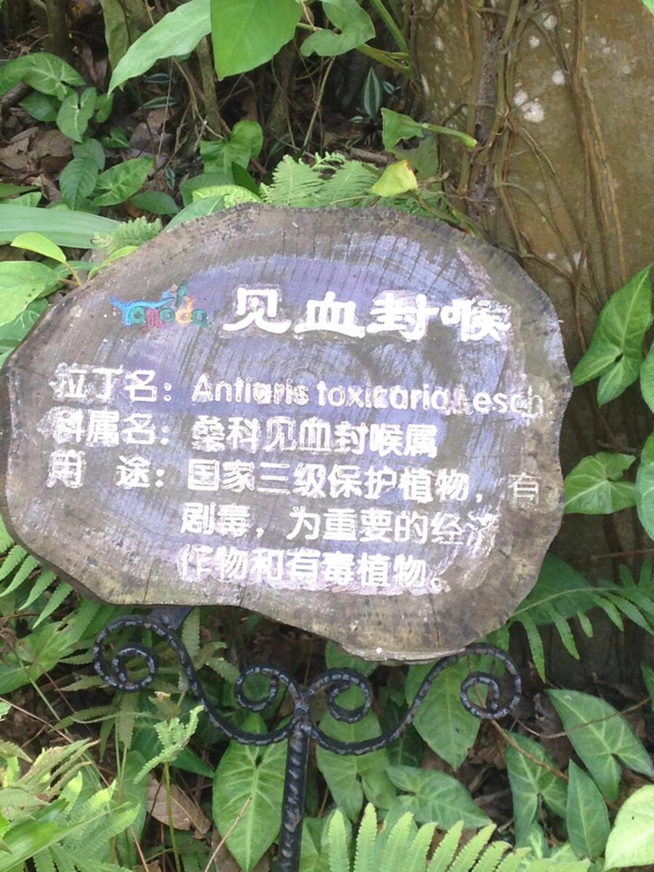 见血封喉(学名:Antiaris toxicaria Lesch.),又名箭毒木,多生于海拔1500米以下的雨林中,乔木,高25-40米,胸径30-40厘米;具乳白色树液,树皮灰色,春季开花。是国家三级保护植物,是一种剧毒植物和药用植物。箭毒木的乳白色汁液含有剧毒,一经接触人畜伤口,即可使中毒者心脏麻痹(心率失常导致),血管封闭,血液凝固,以至窒息死亡,所以人们称它为“见血封喉”。