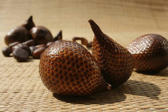 蛇皮果生长在东南亚如菲律宾等国,以其特殊外形受到外来游客的喜爱和推捧。