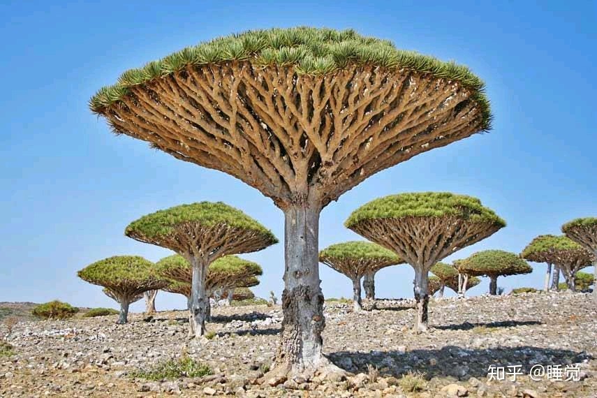 龙血树生长在也门索科特拉岛(Socotra Island)。该岛与大陆板块已经隔绝1800万年,长期的地理隔离生成了很多特有动植物。其中最有名的便是龙血树。