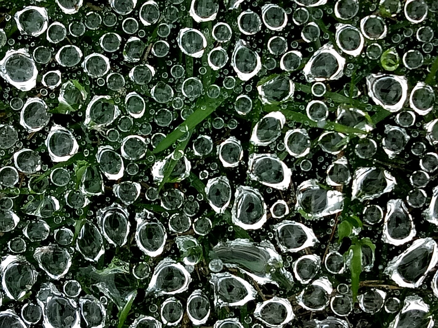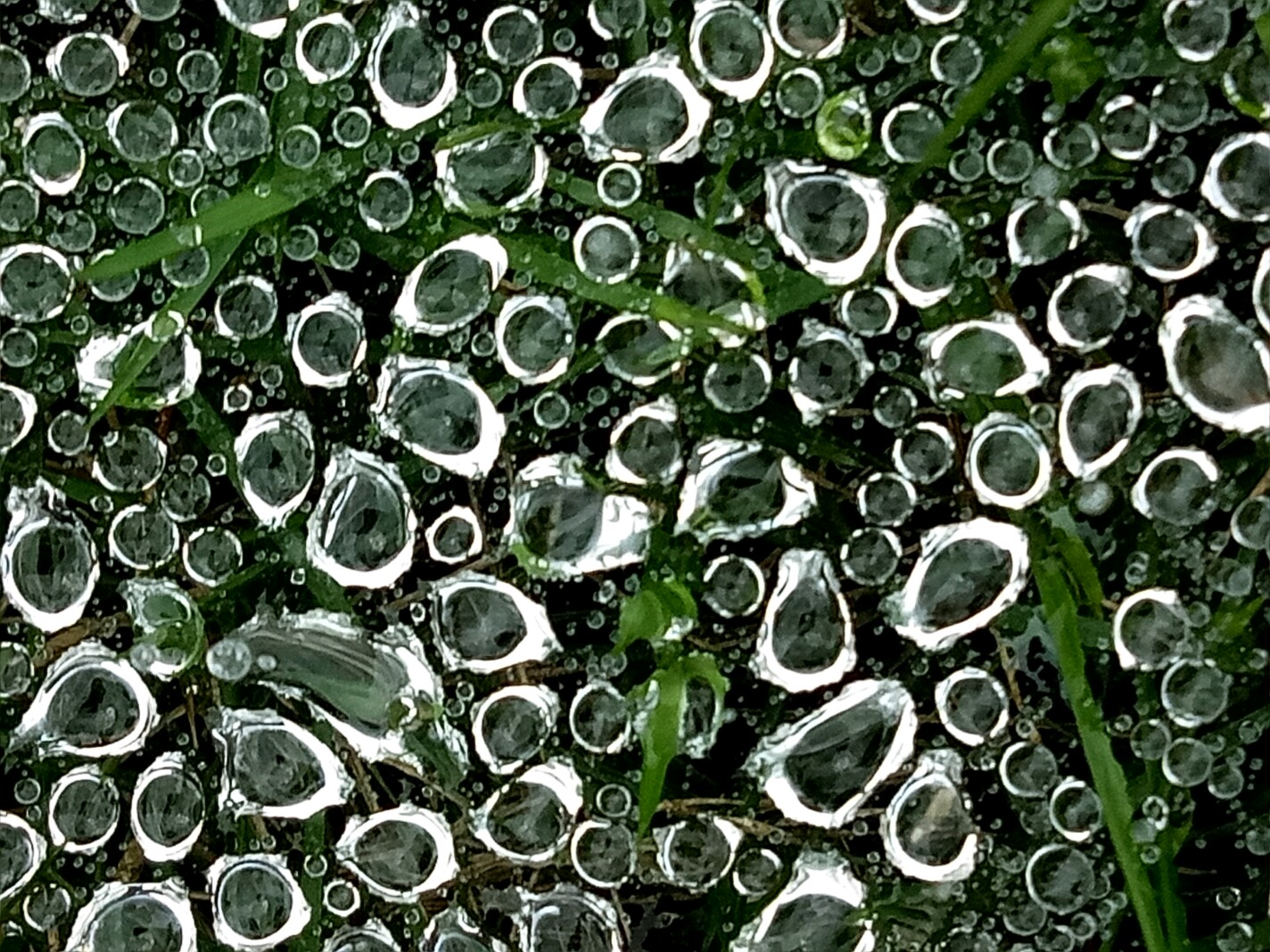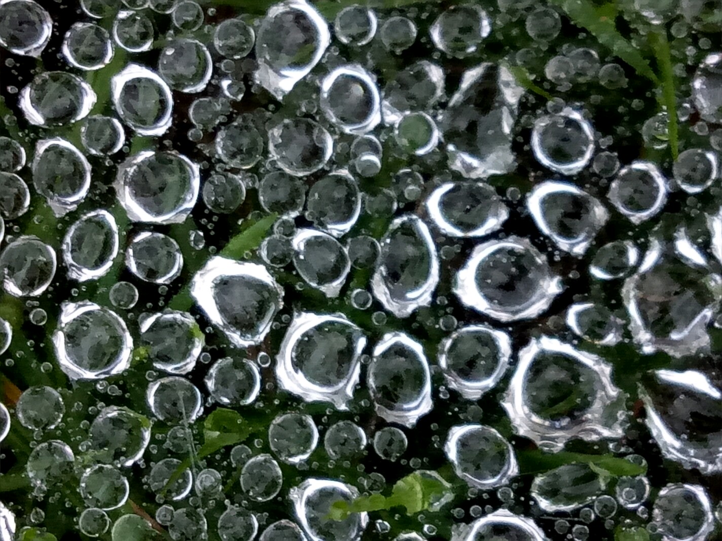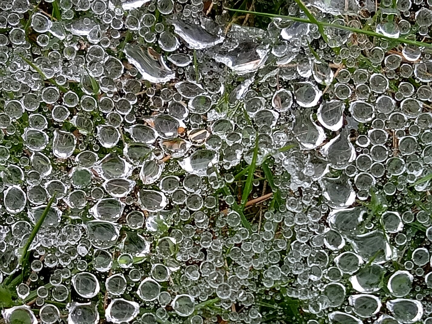 蜘蛛草地织网捕猎物,猎物没来,却来了一网碧珠。