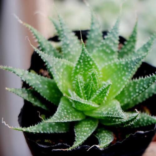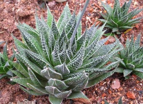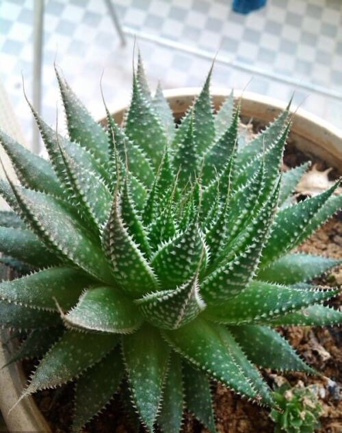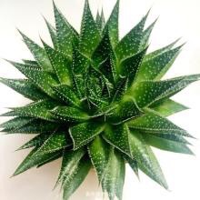 绫锦(学名Aloe aristata ),百合科芦荟属多年生肉质草本,株高可达12厘米,叶片呈莲座状,叶上有小白色斑点和白色软刺,叶缘具细锯齿,深绿色。