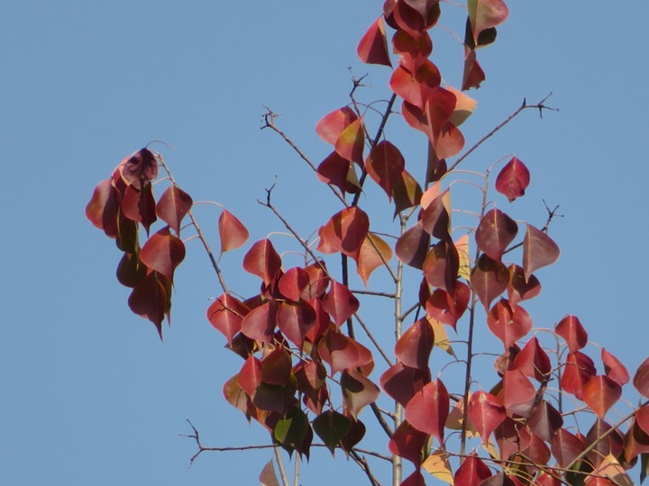 乌桕还是一种经济植物,它的种子可以提炼工业用油,在我国已有近1400年的种植历史。植物园的这颗乌桕树每到冬天叶子都会落光了,余下的枝干在蓝天下宛若一幅美丽的画卷。不少人都在拍它呢。