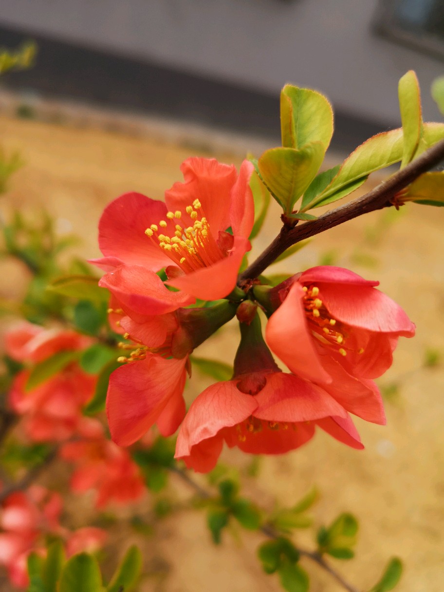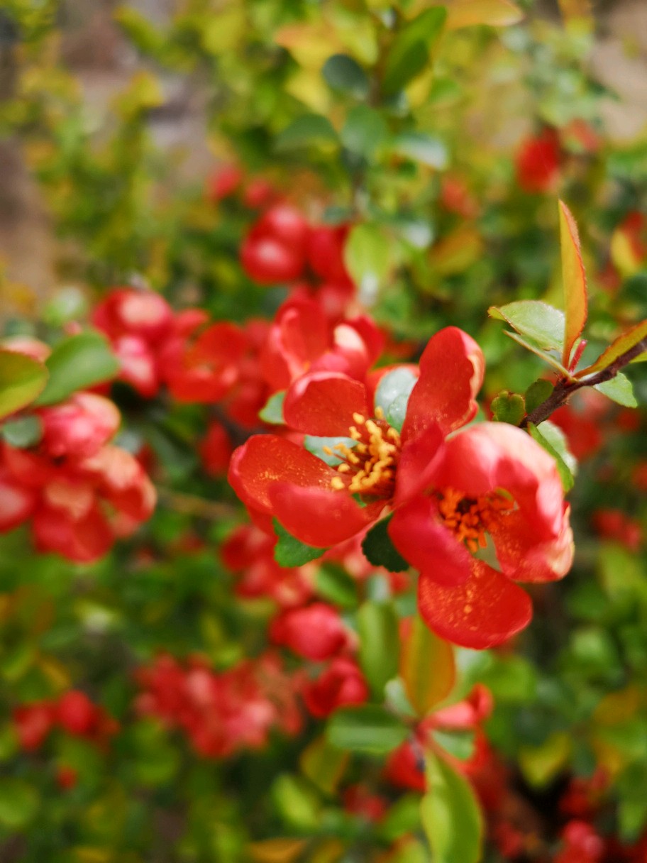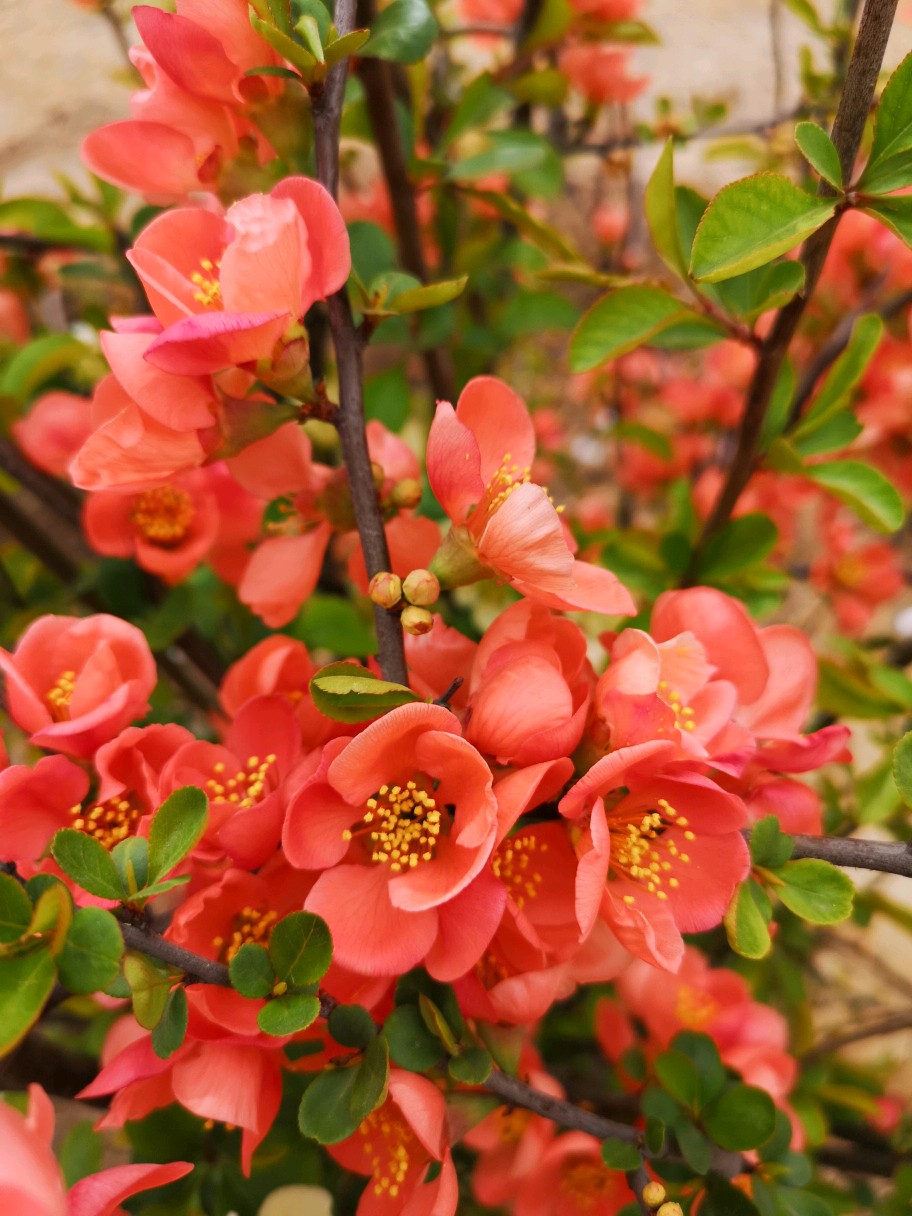 小区前两年新种了几株贴梗海棠,虽然不大,但开花很好看。