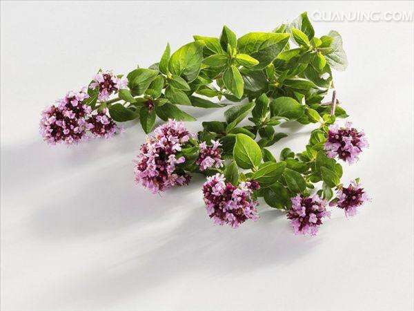 牛至(学名:Origanum vulgare L.)是唇形科,牛至属多年生半灌木或草本植物,芳香;根茎斜生,木质。茎高可达60厘米,四稜形,近基部常无叶。叶具柄,背面近圆形,被柔毛,叶片卵圆形或长圆状卵圆形,先端钝或稍钝,上面亮绿色,常带紫晕,下面淡绿色,苞叶大多无柄,花序呈伞房状圆锥花序,多花密集,小穗状花序组成;苞片锐尖,绿色或带紫晕,花萼钟状,花冠紫红、淡红至白色,管状钟形,两性花冠,冠檐明显二唇形,花丝丝状,扁平,无毛,花药卵圆形,花柱略超出雄蕊,裂片钻形