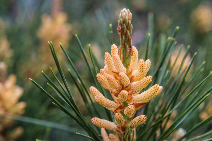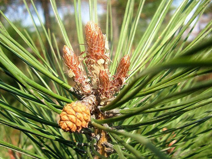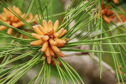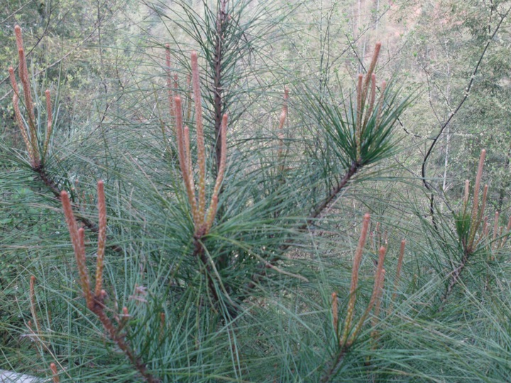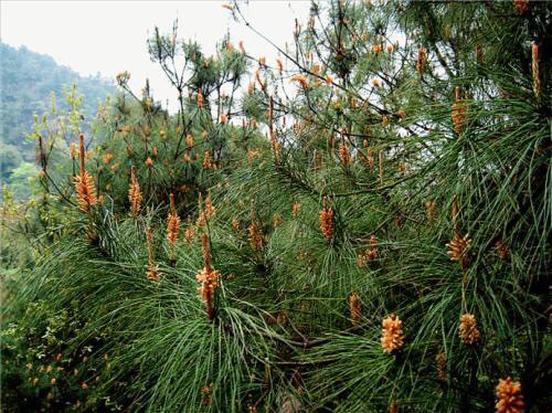 马尾松(学名:Pinus massoniana Lamb.)是松科,松属乔木,,高可达45米,胸径1.5米;树皮红褐色,枝平展或斜展,树冠宽塔形或伞形,枝条每年生长一轮(广东两轮),冬芽卵状圆柱形或圆柱形,针叶,细柔,微扭曲,两面有气孔线,边缘有细锯齿;叶鞘宿存。