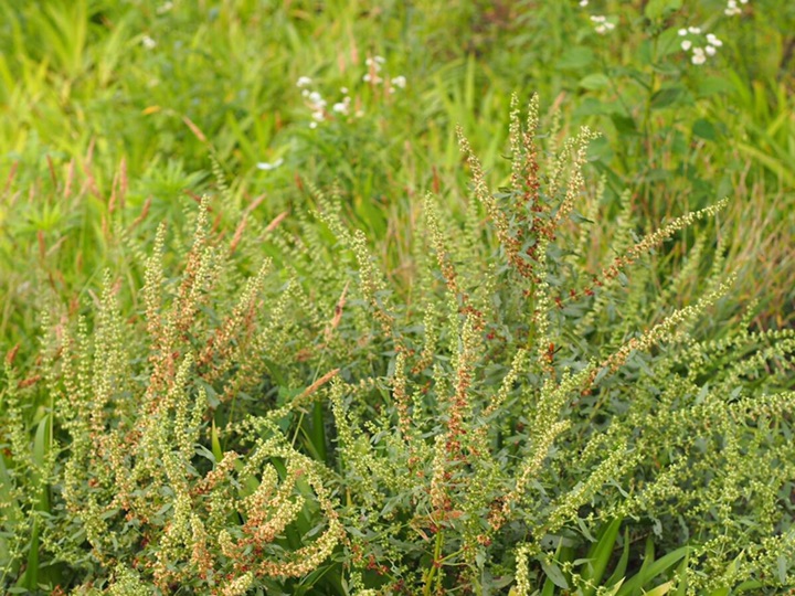 酸模(学名:Rumex acetosa L.)是蓼科,酸模属多年生草本植物,高可达100厘米,具深沟槽,通常不分枝。基生叶和茎下部叶箭形,顶端急尖或圆钝,基部裂片急尖,全缘或微波状;茎上部叶较小,具短叶柄或无柄;托叶鞘膜质,易破裂。花序狭圆锥状,顶生,分枝稀疏;花单性,雌雄异株;花梗中部具关节;雄花内花被片椭圆形,长约3毫米,外花被片较小,近圆形,瘦果椭圆形,黑褐色,有光泽。