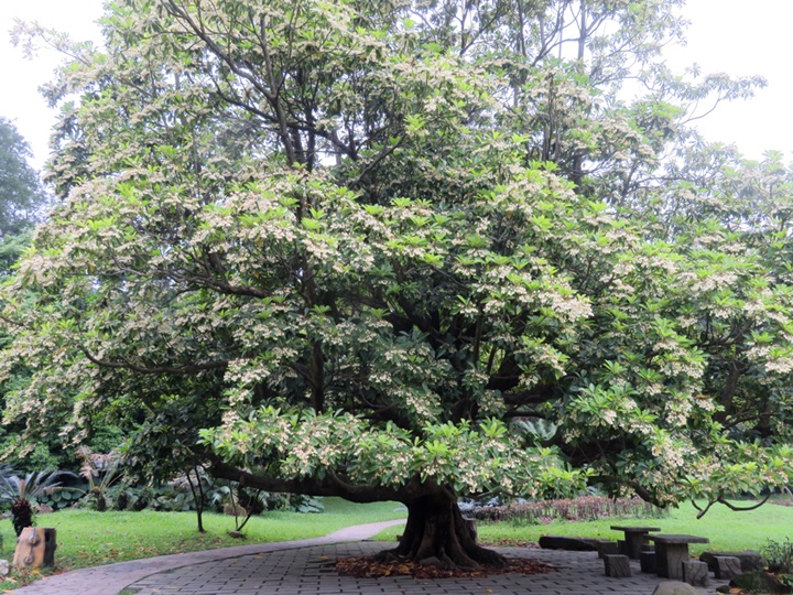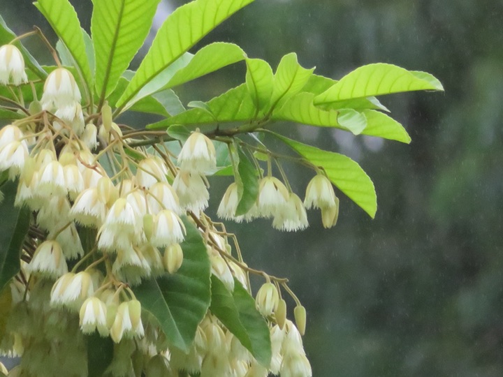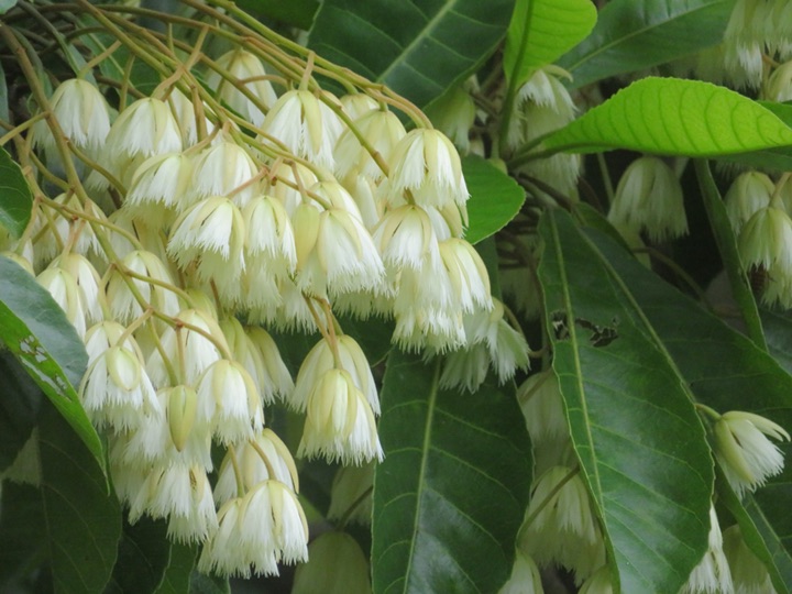 这颗尖叶杜英花开满树,真壮观!