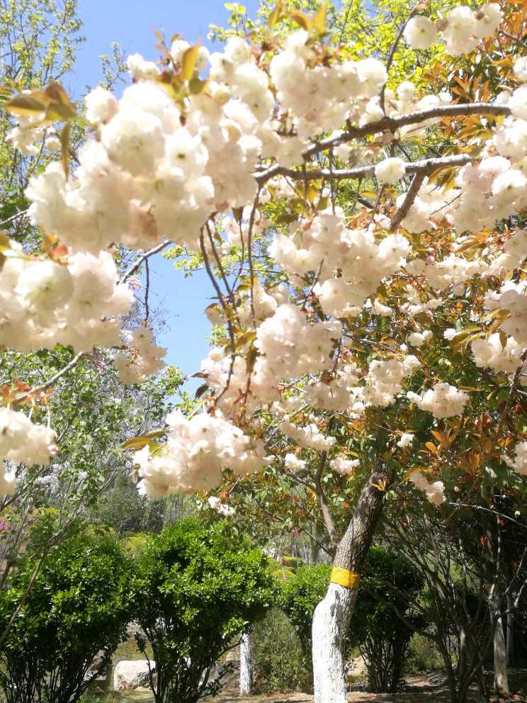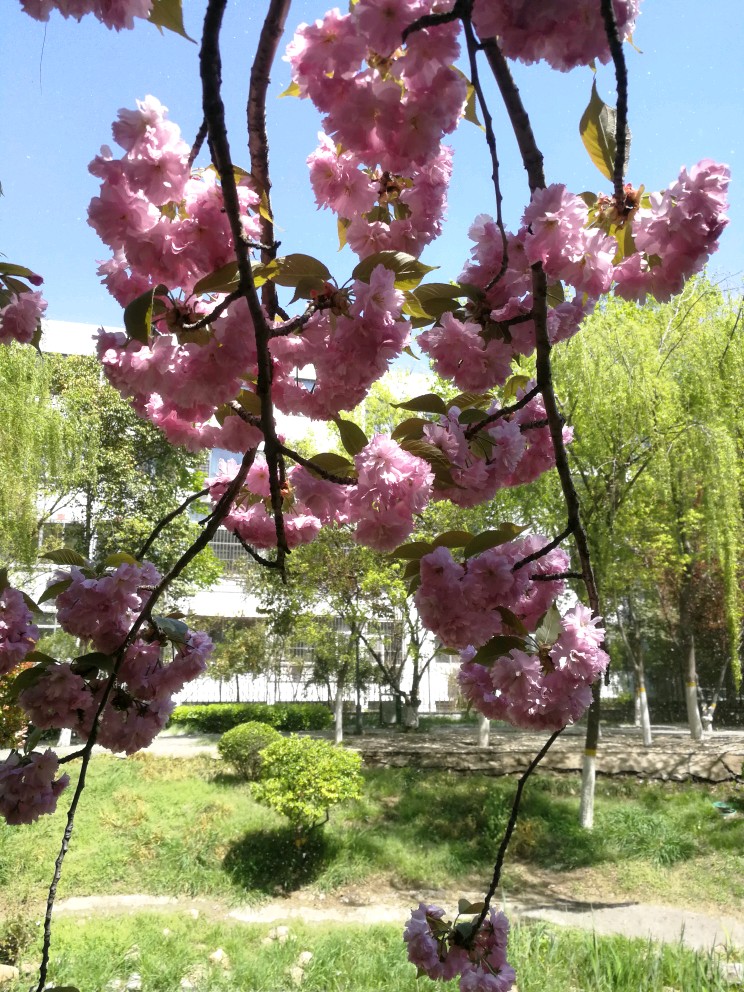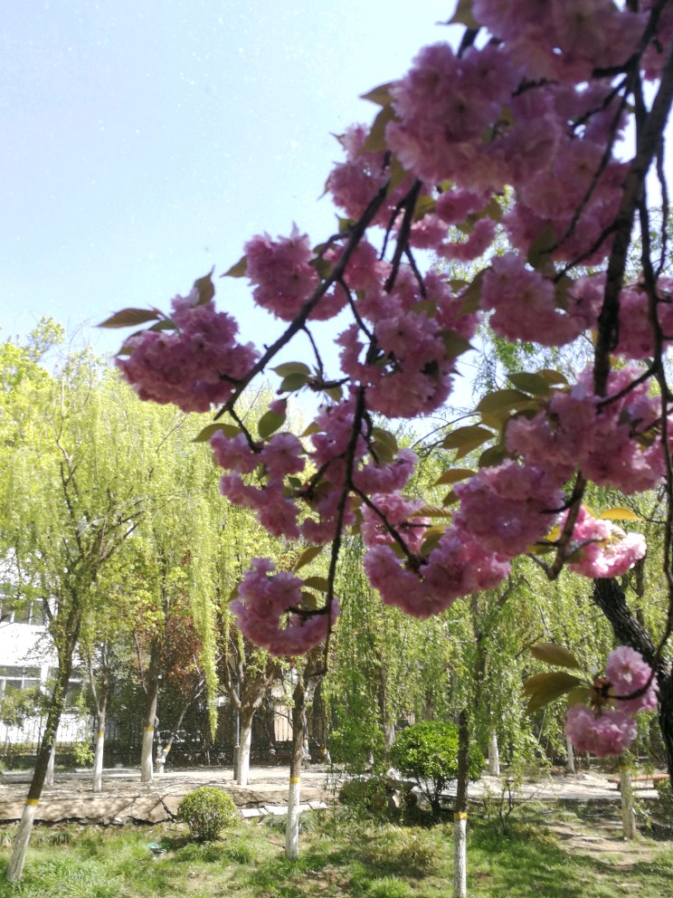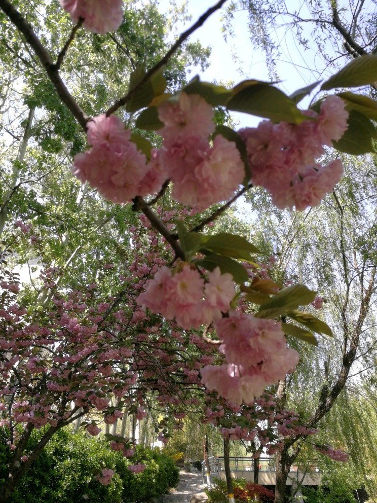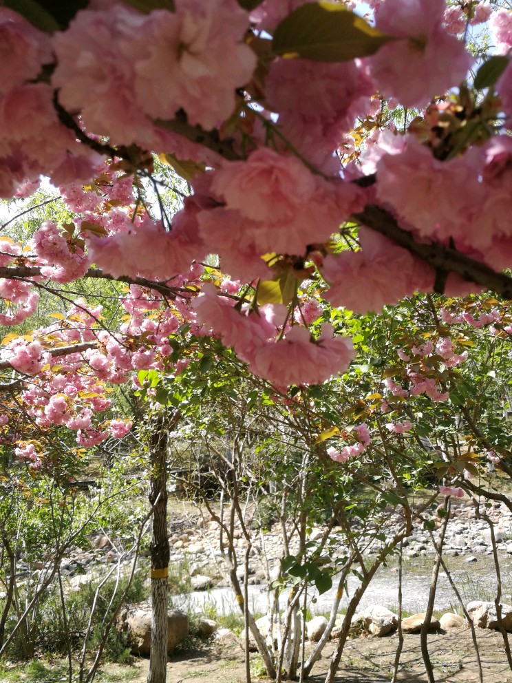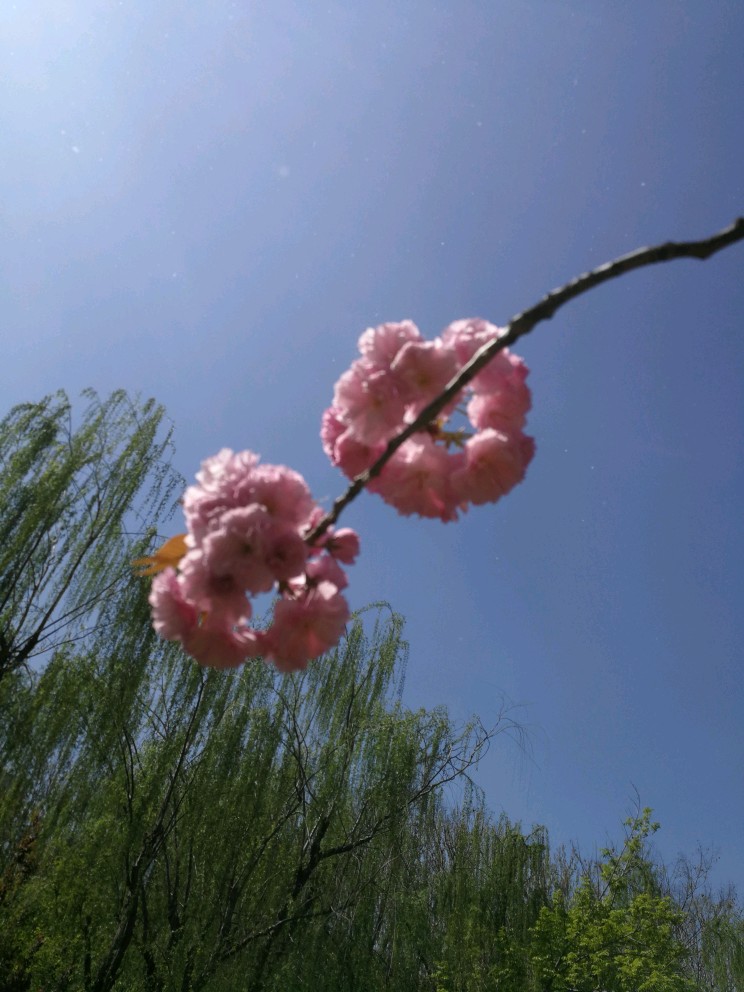 河边的八重樱,染柳烟浓