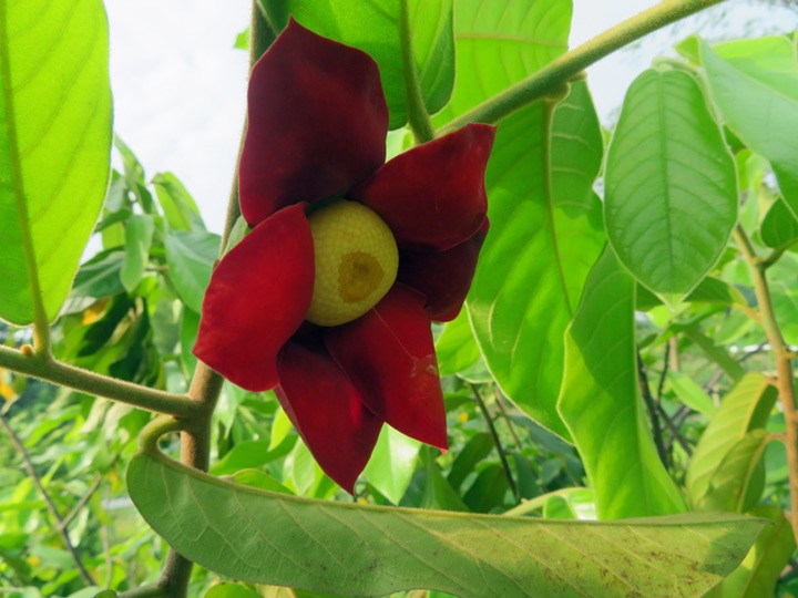 别称川血乌、红肉梨。攀援灌木。花大、紫红色或深红色。花期3–11月,果期5–12月。这么长时间的花期,可以慢慢欣赏。