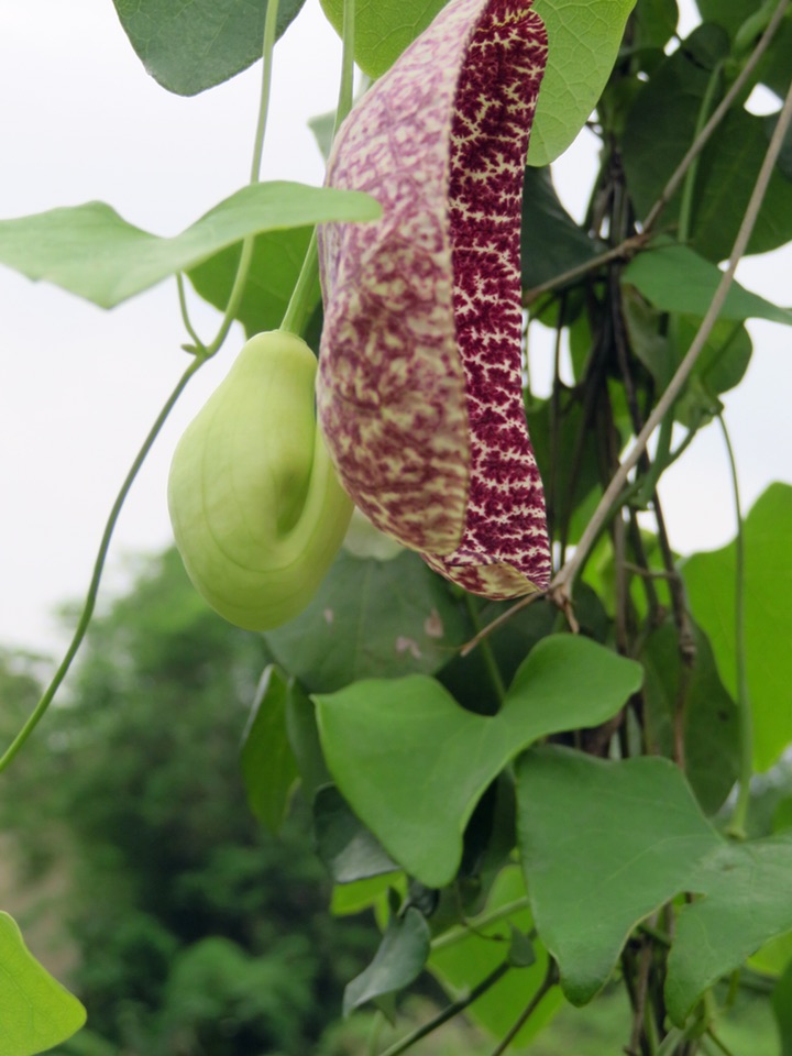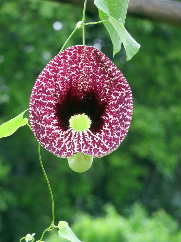 美丽马兜铃真漂亮,任谁都会喜欢这顶美丽的花帽子。是马兜铃科马兜铃属多年生草质藤本植物。可药用。
