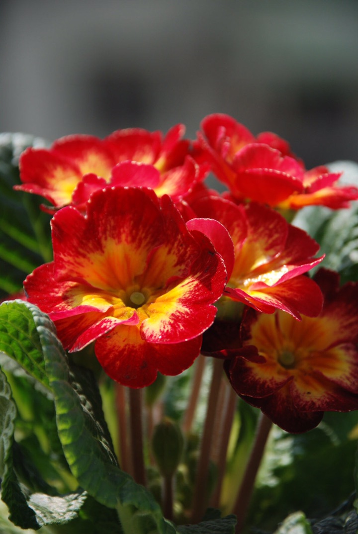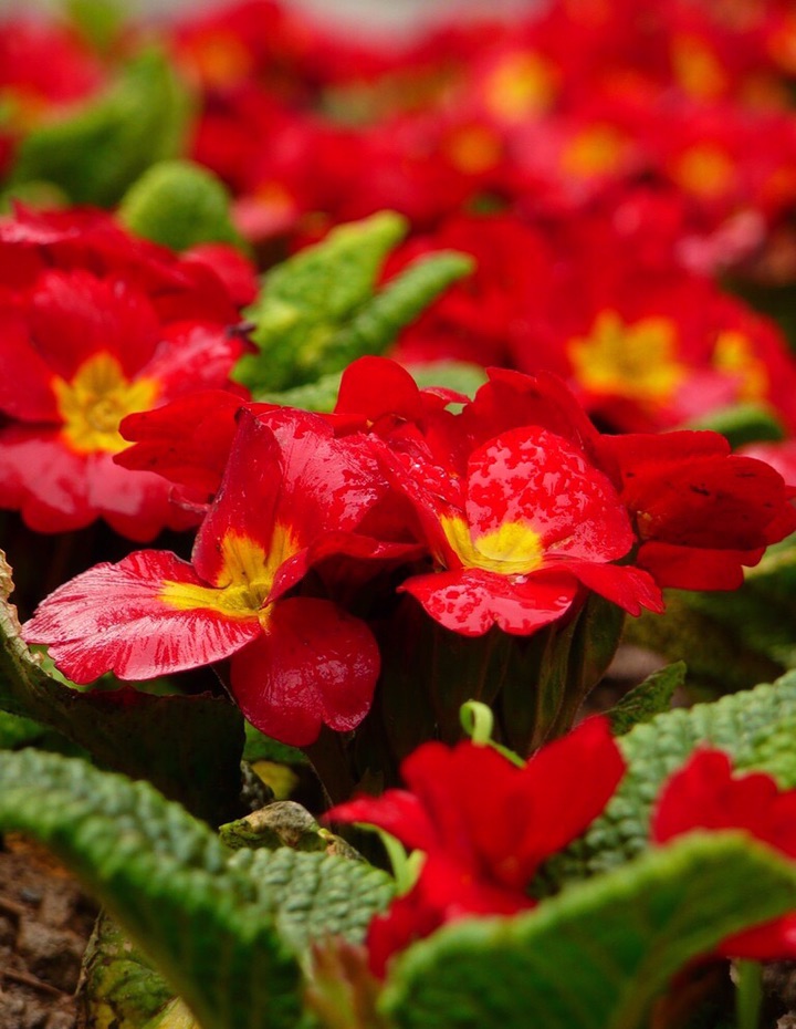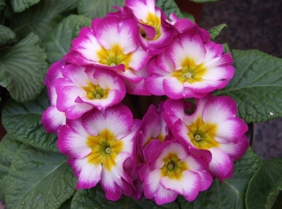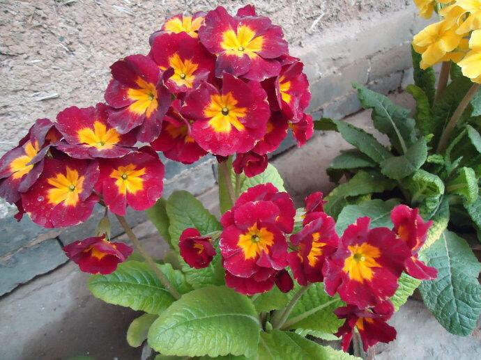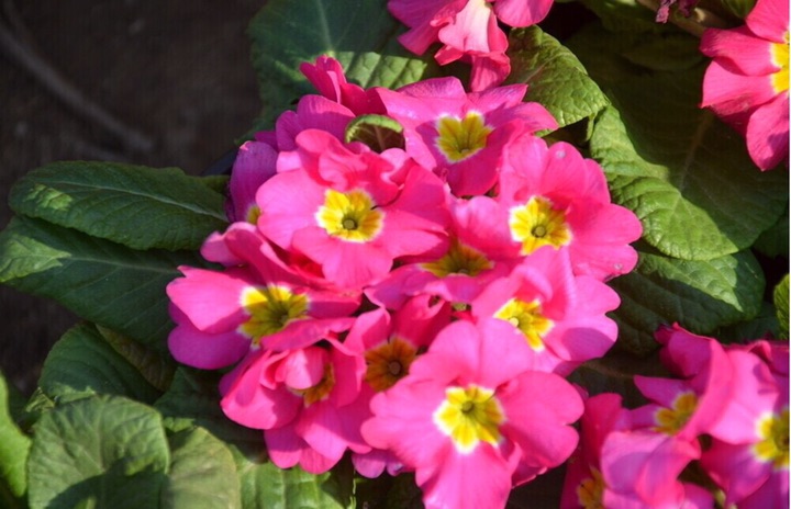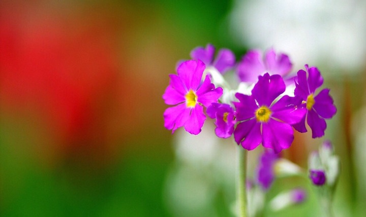 报春花 (Primula malacoides Franch.):报春花科报春花属二年生草本植物,通常被粉,叶簇生,叶片卵形至椭圆形或矩圆形,裂片具不整齐的小牙齿,叶柄被多细胞柔毛。花葶高可达40厘米,伞形花序,苞片线形或线状披针形,花梗纤细,花萼钟状,花冠粉红色,淡蓝紫色或近白色,蒴果球形,2-5月开花,3-6月结果。