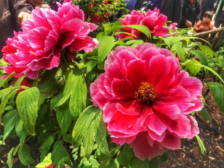 游客不能免俗,看到如此美景,总想和牡丹合影留下美好瞬间,殊不知,人哪里有花美呢?不如只记录下牡丹的美丽吧!