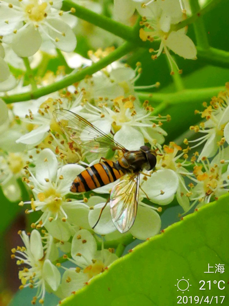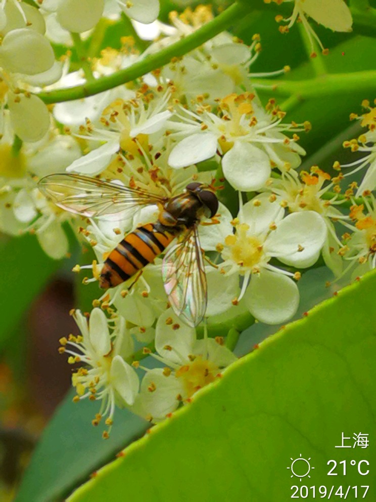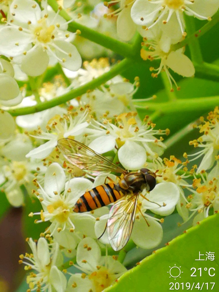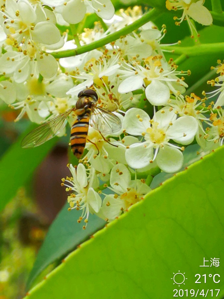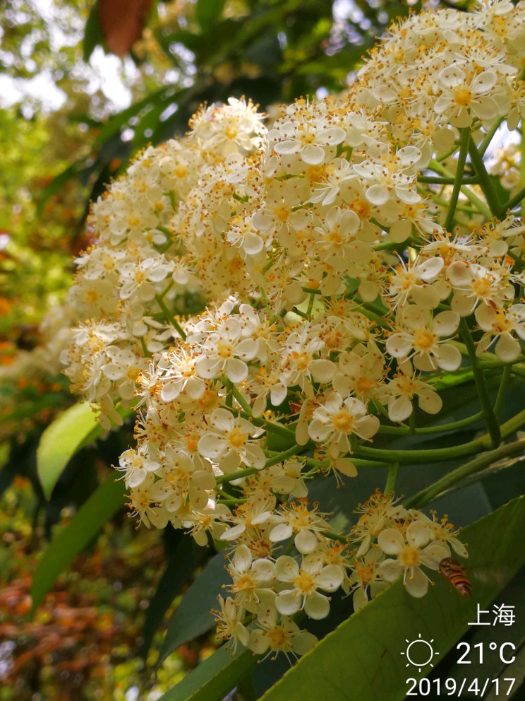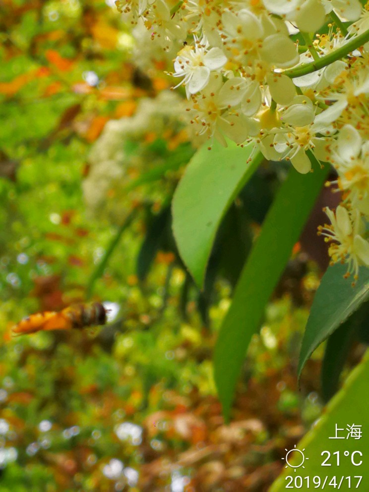 话不多说,上图。小蜜蜂和石楠花。