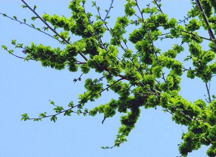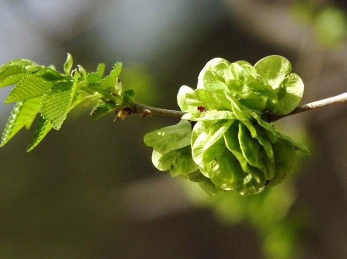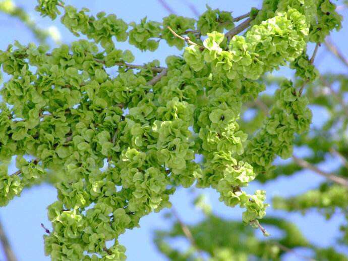 榆树(学名:Ulmus pumila L.):又名春榆、白榆等,素有“榆木疙瘩”之称,为榆科落叶乔木,幼树树皮平滑,灰褐色或浅灰色,大树之皮暗灰色,不规则深纵裂,粗糙;小枝无毛或有毛,无膨大的木栓层及凸起的木栓翅;冬芽近球形或卵圆形。叶椭圆状卵形等,叶面平滑无毛,叶背幼时有短柔毛,后变无毛或部分脉腋有簇生毛,叶柄面有短柔毛。花先叶开放,在生枝的叶腋成簇生状。翅果稀倒卵状圆形。花果期3-6月。