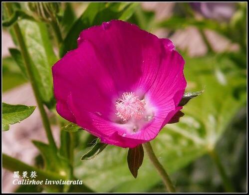 罂粟葵,锦葵科罂粟葵属多年生草本植物,是从国外引进的地被花卉,主根白色粗壮。单叶互生,花紫红色,花期夏季。性喜温暖、阳光充足,在排水通畅、肥沃的土壤上生长良好,忌高温、湿涝。早秋或春季播种,秋季分株,也可于早春嫩枝扦插繁殖。罂粟葵花色艳丽,栽培管理简便,可用于花境,护坡等。