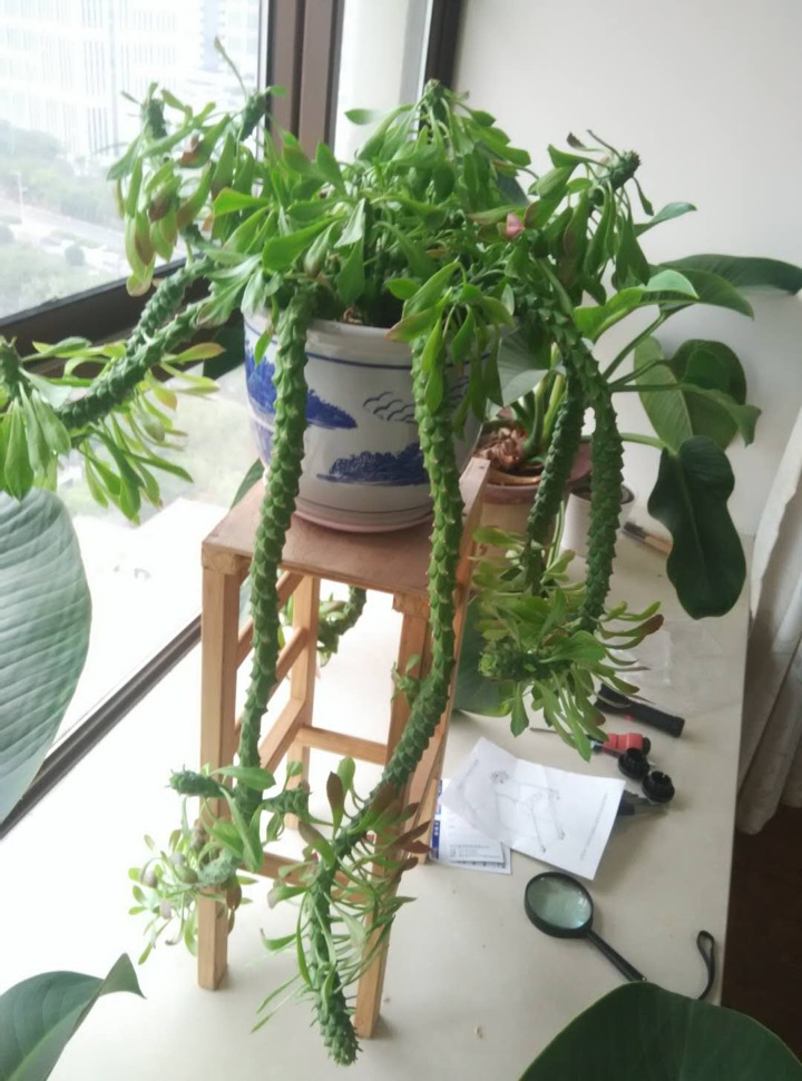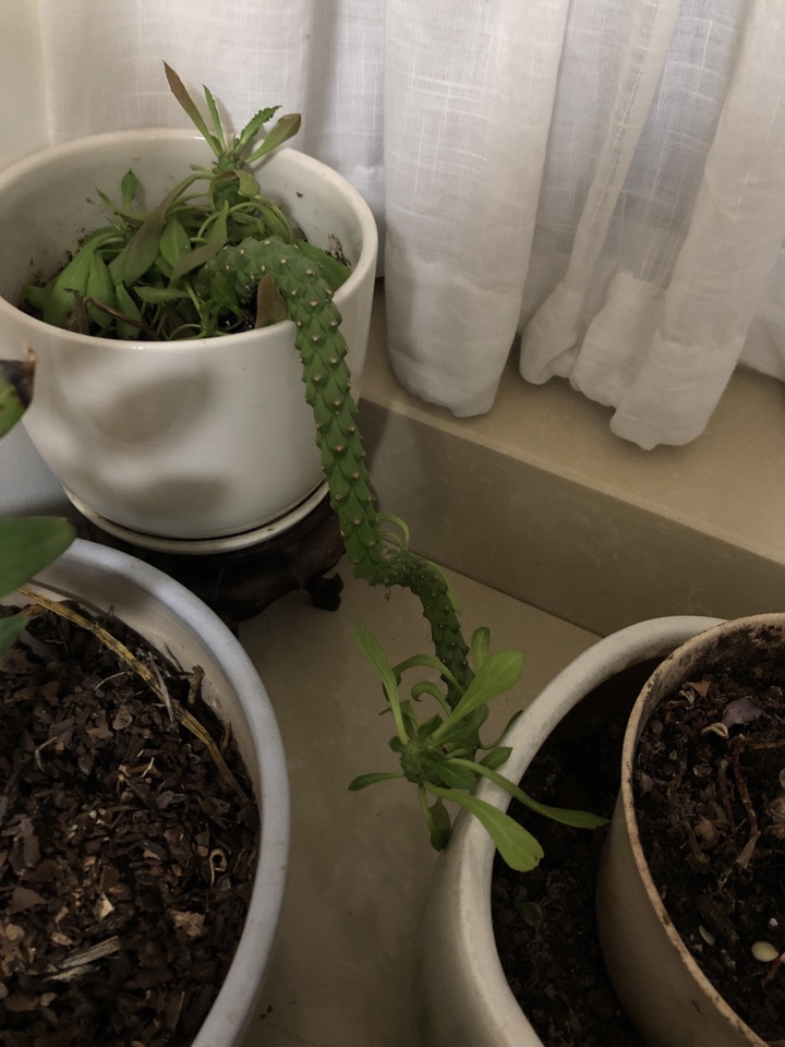 :应该是霸王鞭,你这是光照不够,又缺水肥。所以长畸形了吧。