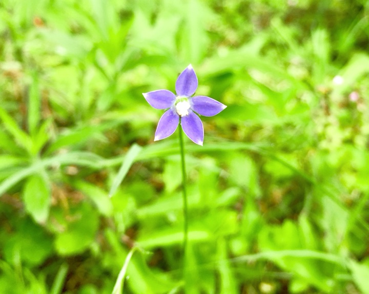 小茎顶端,一朵玲珑的紫色小花。蓝花参是桔梗科蓝花参属植物,分布在江南丘陵平原地带,晒干泡茶可以退火清热,只不过那种苦味是也是
