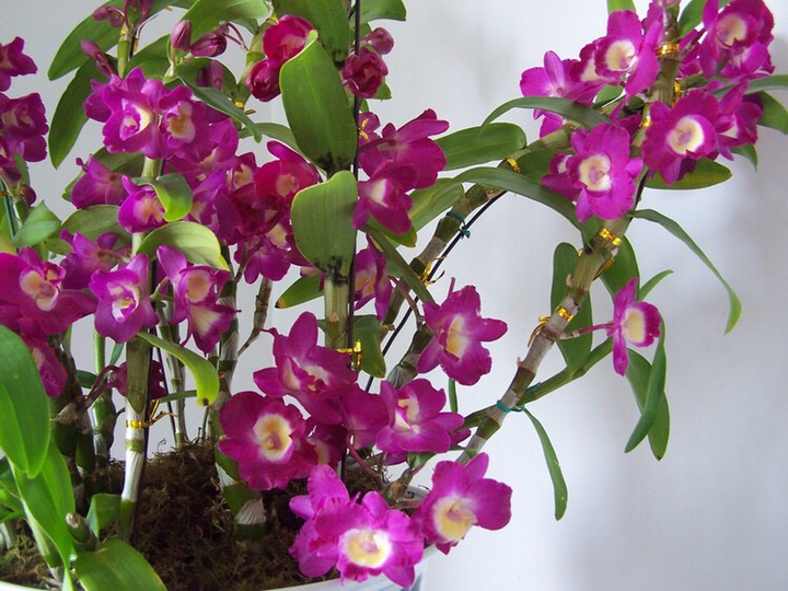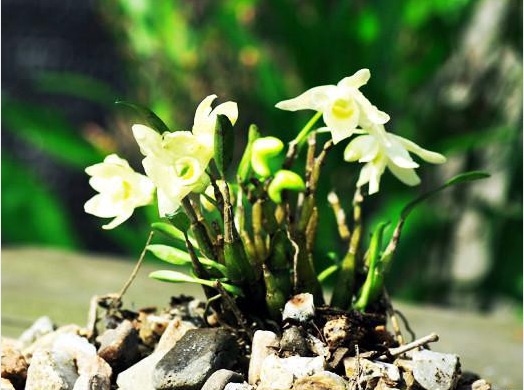 石斛(学名:Dendrobium nobile Lindl),又名仙斛兰韵、不死草、还魂草、紫萦仙株、吊兰、林兰、禁生、金钗花等。茎直立,肉质状肥厚,稍扁的圆柱形,长10~60厘米,粗达1.3厘米。药用植物,性味甘淡微咸,寒,归胃、肾,肺经。益胃生津,滋阴清热。用于阴伤津亏,口干烦渴,食少干呕,病后虚热,目暗不明。石斛花姿优雅,玲珑可爱,花色鲜艳,气味芳香,被喻为“四大观赏洋花”之一。