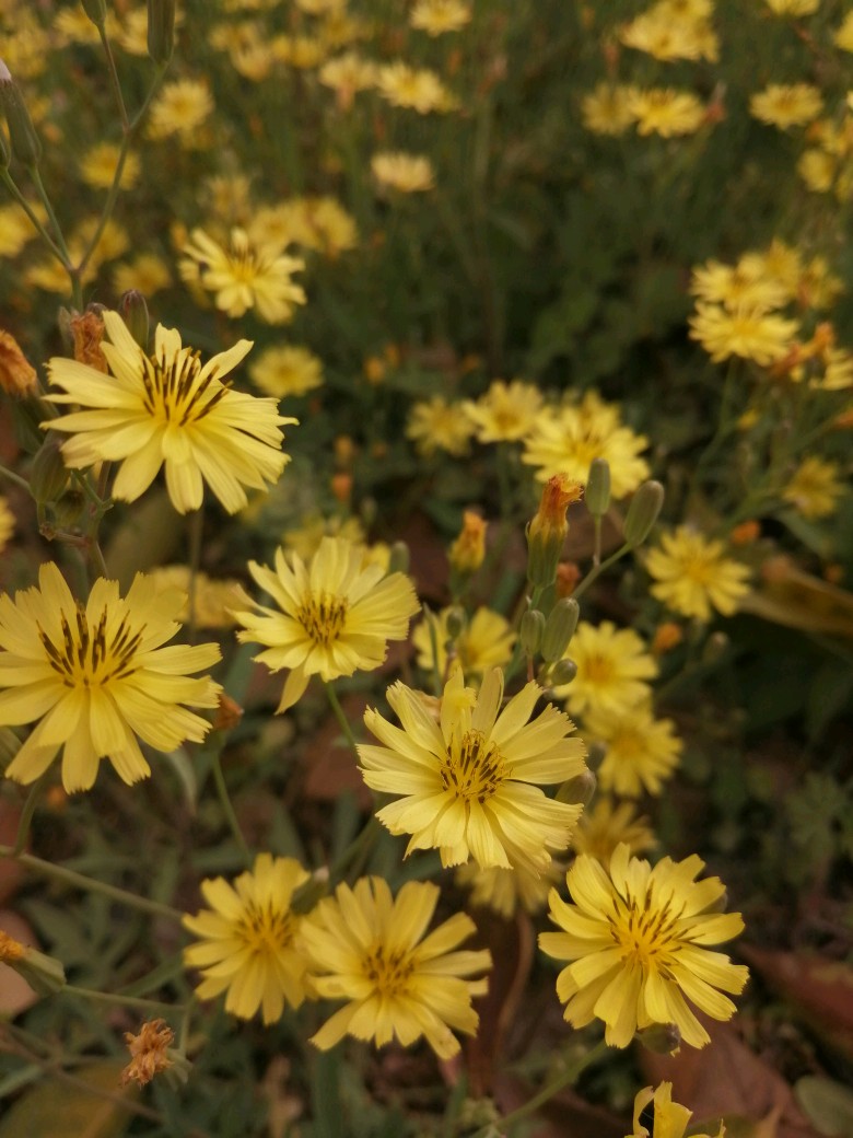 路边,星星点点的小黄花开了,热闹非凡。它叫苦荬菜,是一种十分常见的植物,可全草入药。具有清热解毒,止血生机等功效。这小小的花也一样有它的花语,代表着纯洁友善以及真诚温暖等品质。