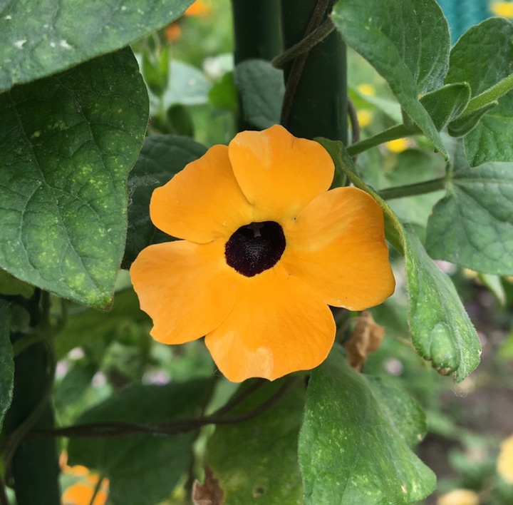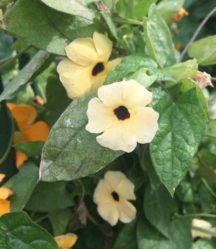 周日在北京植物园还见到了黑眼苏珊,花如其名,花中间有一个不大的黑圆,称其为黑眼倒也形象。黑眼苏珊这个名字让它增加了不少神秘色彩,如果你称呼它的学名翼叶山牵牛就觉得很普通了。