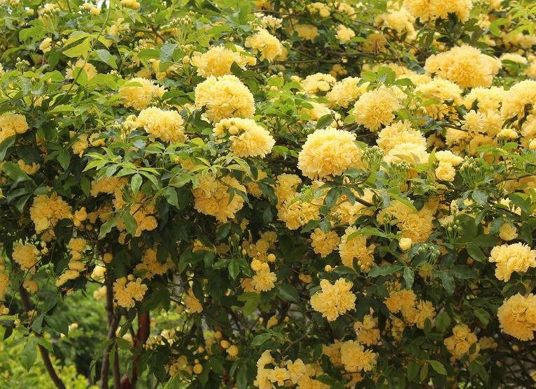 木香的茎干寿命长,基本无刺。老茎干树皮纸状剥落,露出棕红色内皮。故木香是制作树状月季的优良砧木。重瓣及黄色的变种是棚架篱垣绿化的优良材料。
