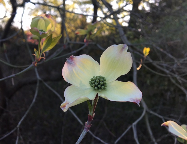 以前在德国门兴的一个公园拍到一种花,四个花瓣绿绿的,中间有个圆疙瘩,我发到形色有朋友说是四照花,我百度了觉得也像。