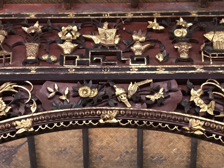 国宝级的雕花木床,牡丹花,莲花,佛手,桃子,葡萄,配些飞禽走兽,透雕,圆雕,线刻,多层镶嵌,美呀!