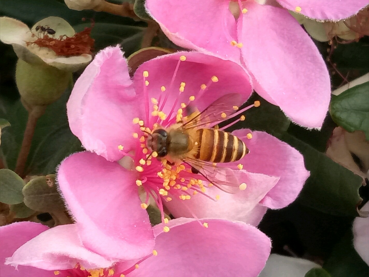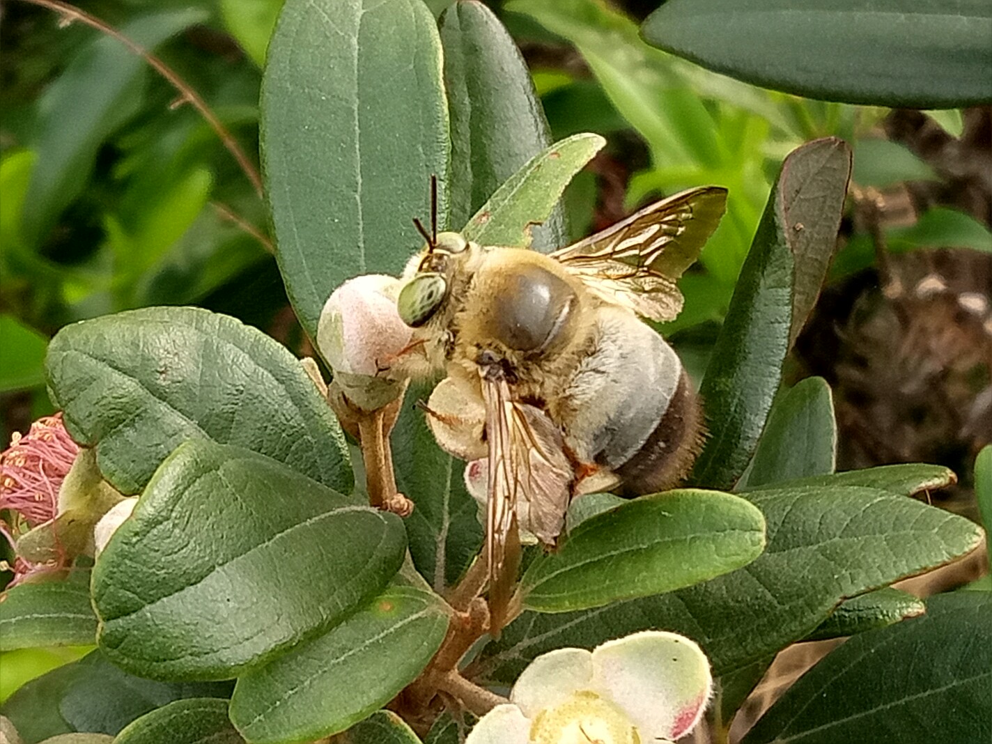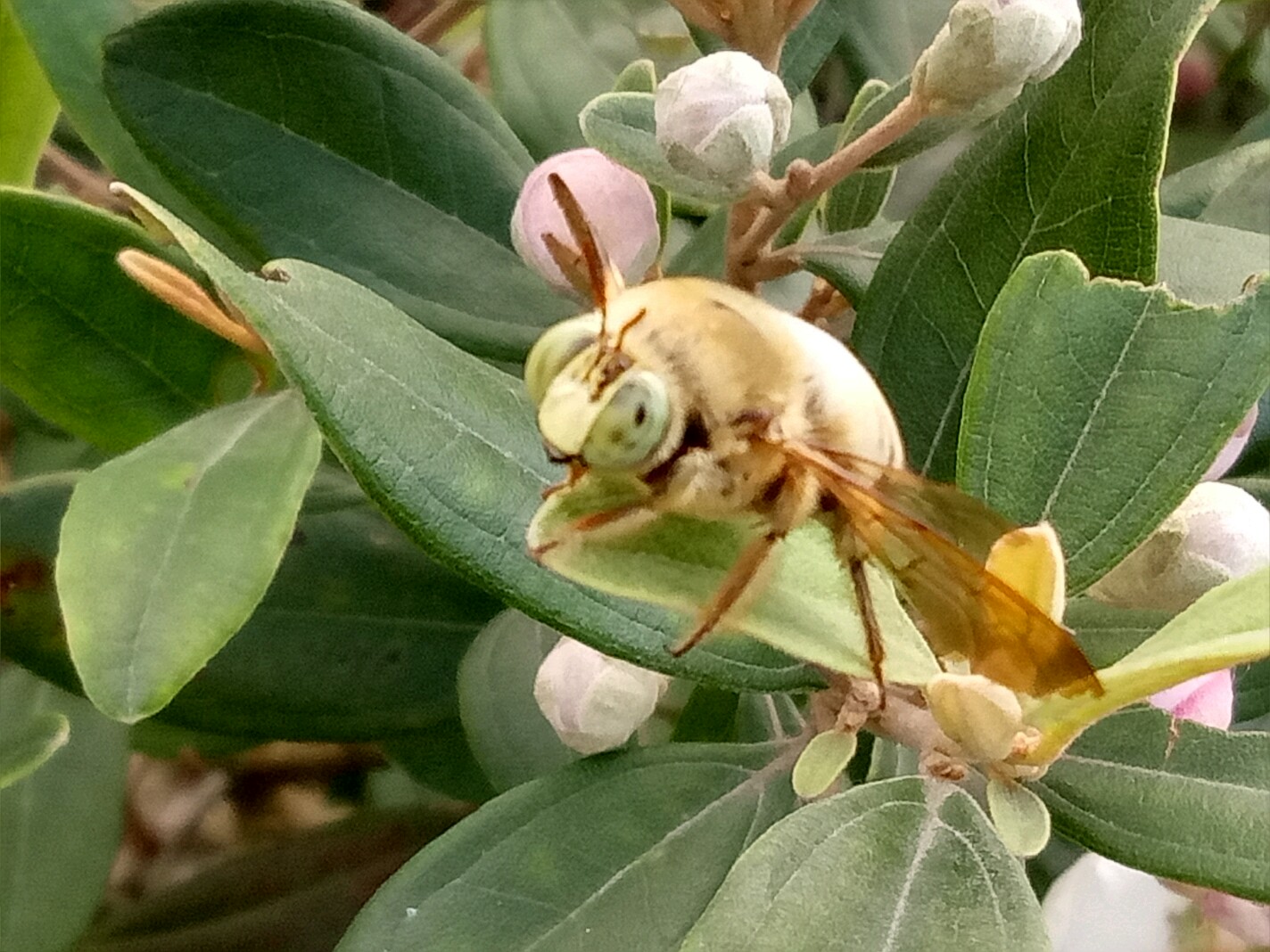 :请教蓝狐师父,我也不知是什么蜂!在山上拍的,还有几张在我的手指上拍的,比后二张还要清。只不过是表达桃金娘与蜜蜂,所以选了两张同样是在花上的什么蜂来滥芋充数罢了!你知那是什么蜂吗?请教!