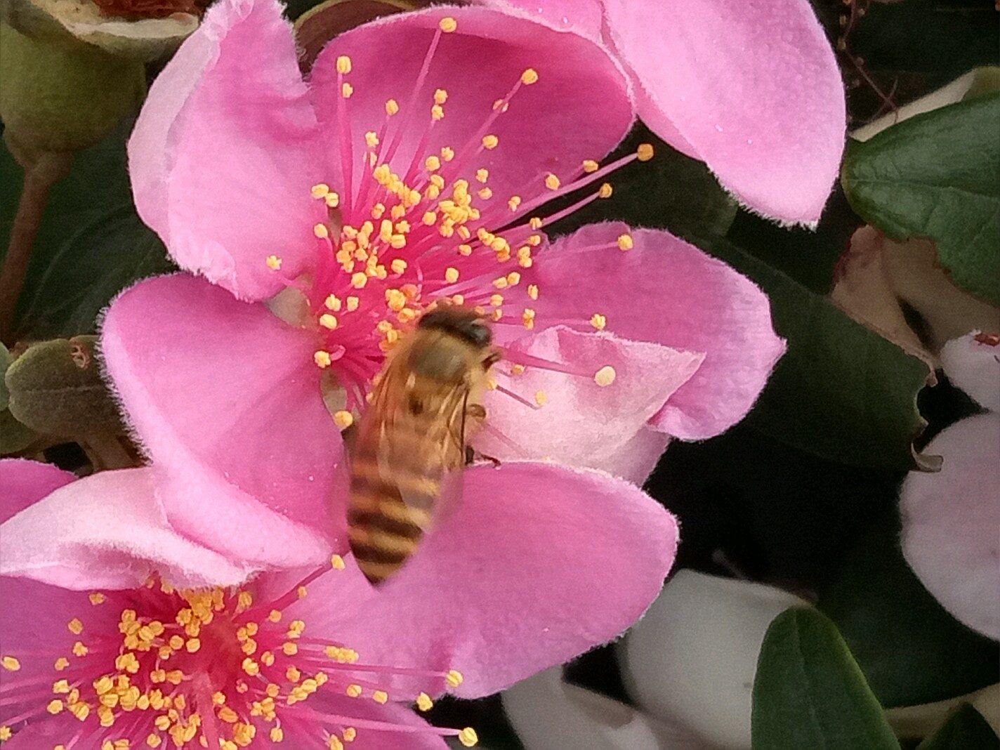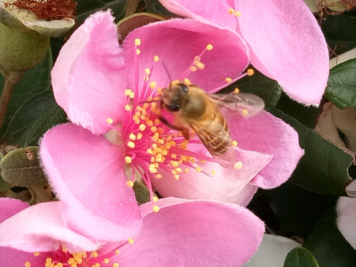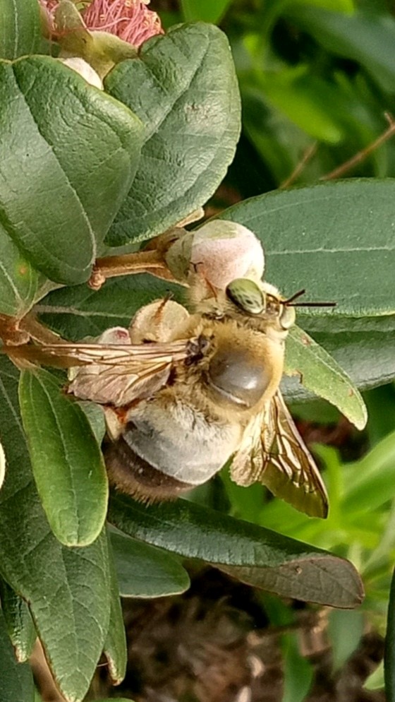 :请教蓝狐师父,我也不知是什么蜂!在山上拍的,还有几张在我的手指上拍的,比后二张还要清。只不过是表达桃金娘与蜜蜂,所以选了两张同样是在花上的什么蜂来滥芋充数罢了!你知那是什么蜂吗?请教!