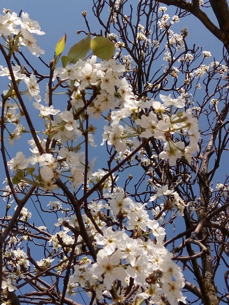 白花丛中梨花开,蓝天下朵朵花儿映春色!