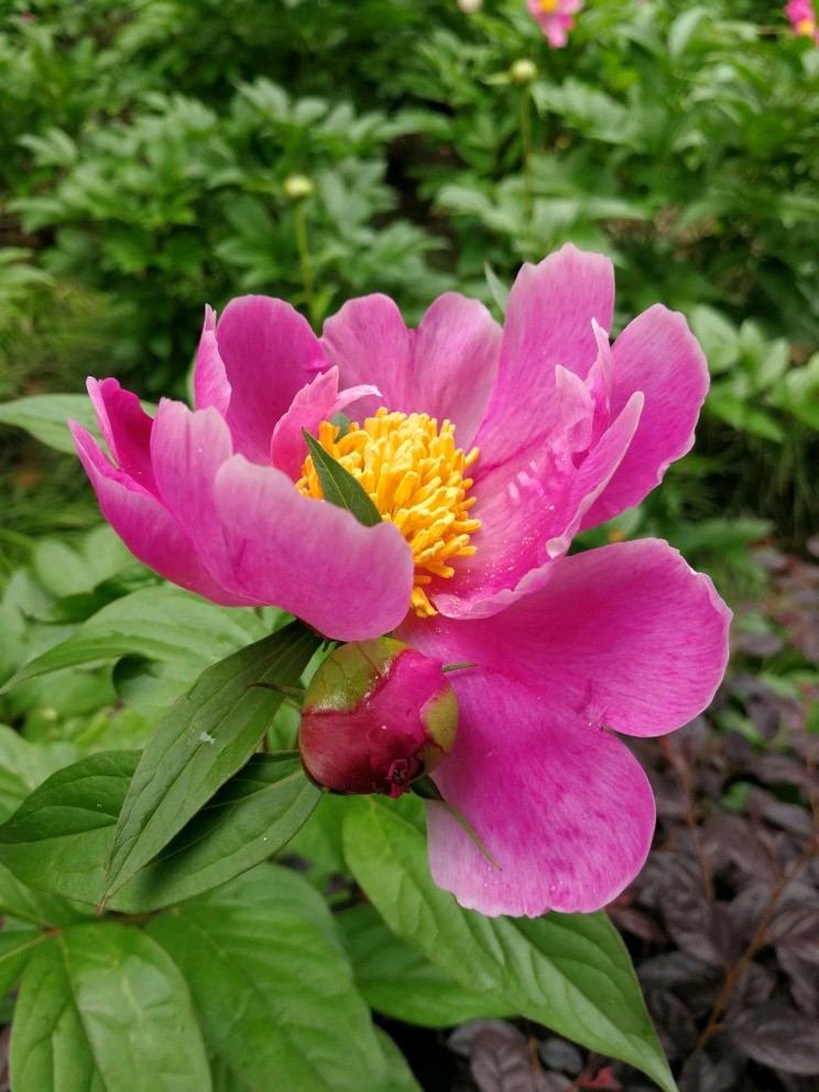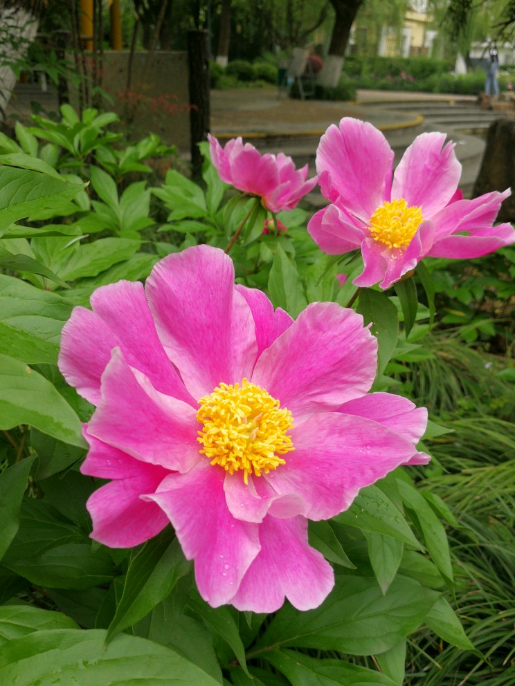 小公园里牡丹开过后,芍药也紧跟着怒放了。古人评花:牡丹第一,芍药第二,谓牡丹为花王,芍药为花相。因为它开花较迟,故又称为“殿春”。