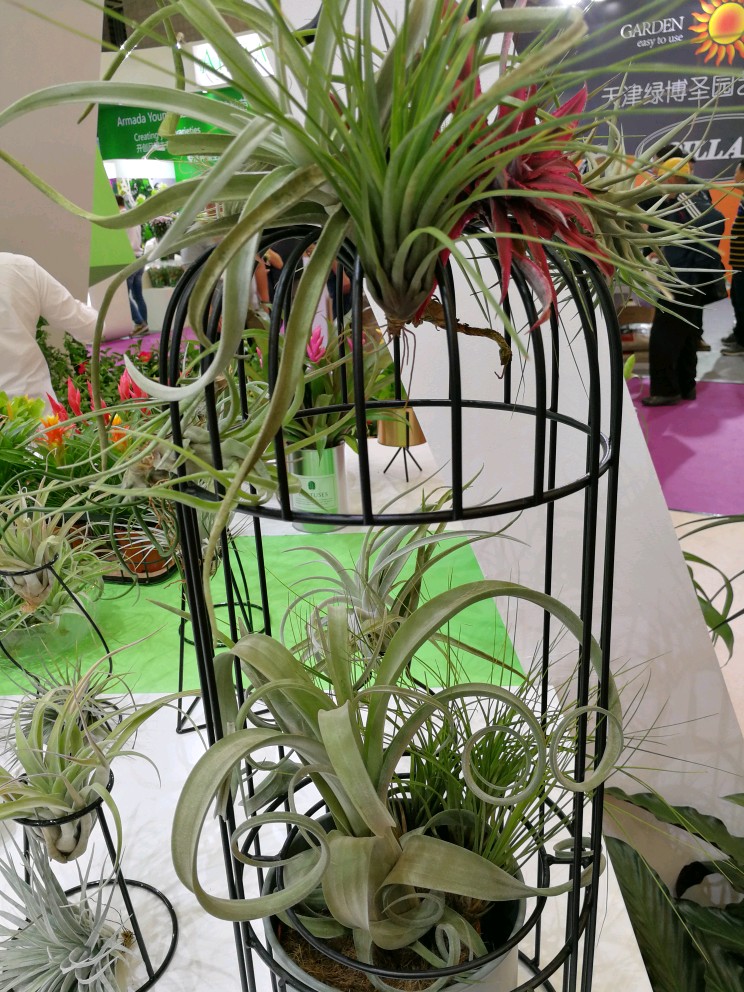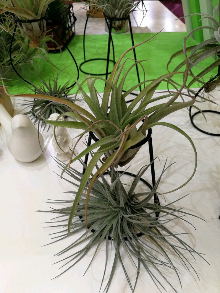 空气凤梨是地球上唯一完全生存于空气中的植物,不用泥土就可以茂盛生长。品种繁多,形态各异,可观花赏叶。由于有着很高的观赏价值,加上相对比较干净和容易照顾,很多人都将其用作绿化居室的装饰物。不过我却是第一次看到。
