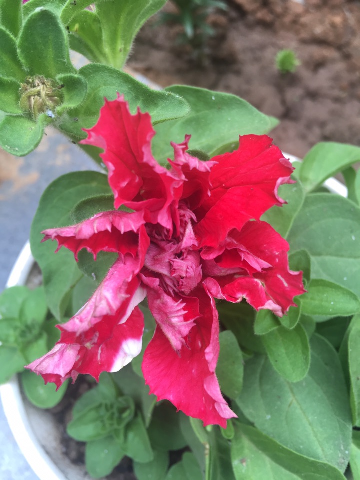 有一朵复瓣的矮牵牛,慢慢展开笑颜