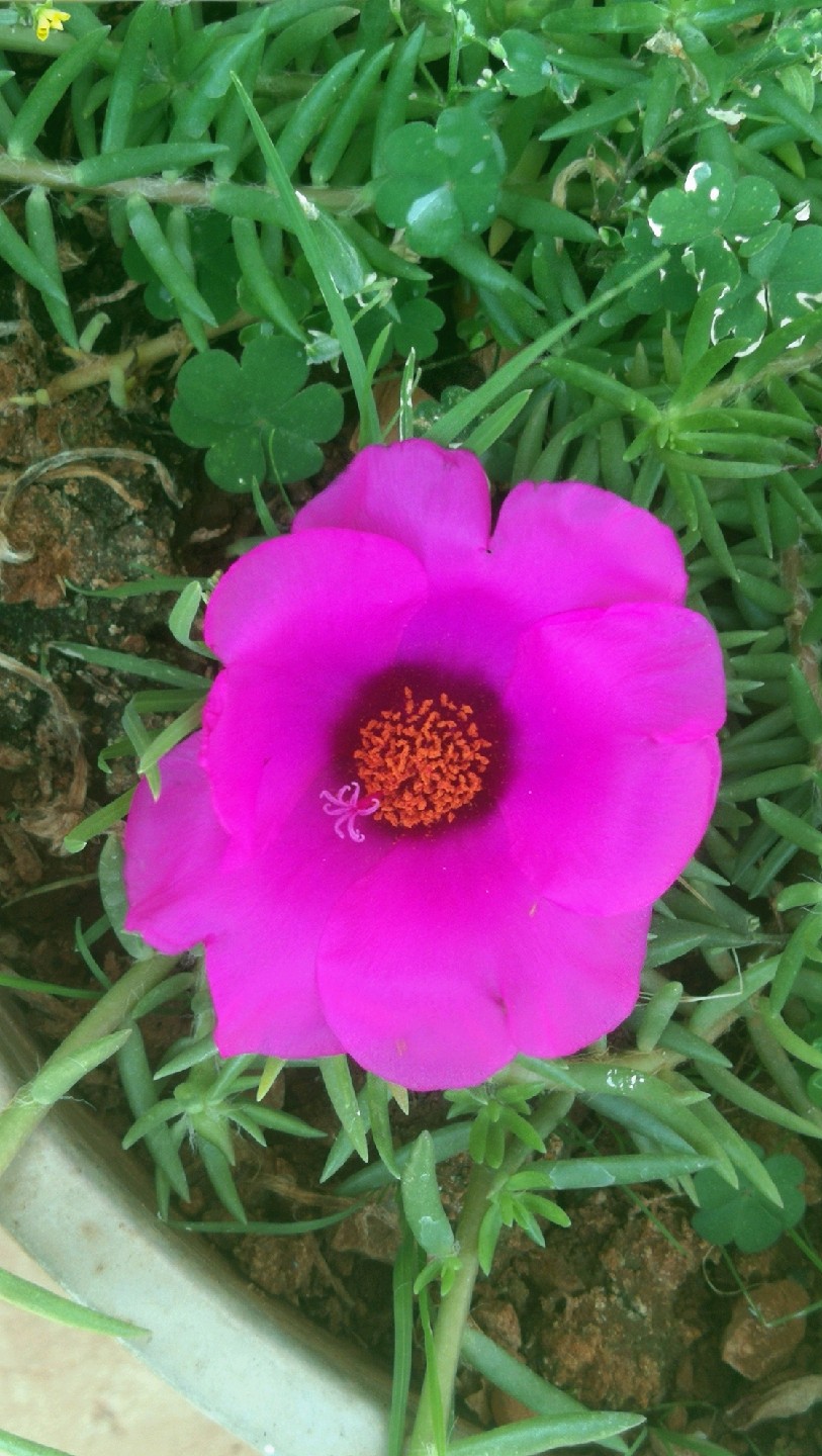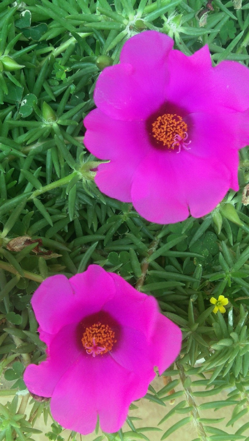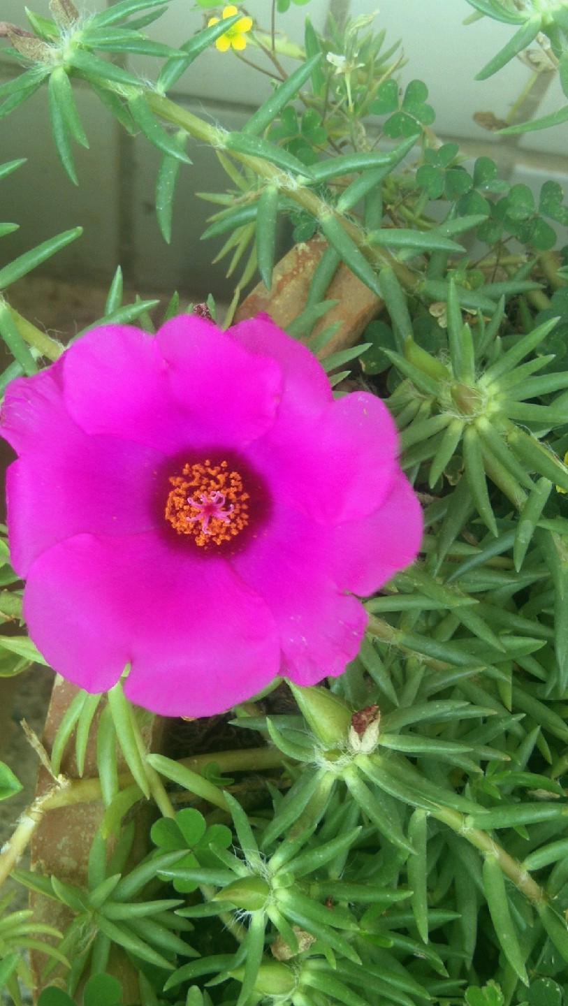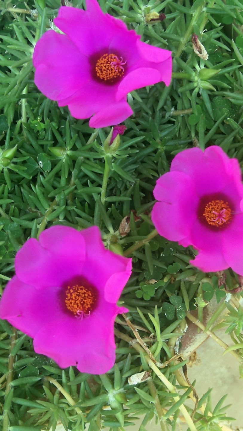 太阳花一看见阳光花就开了,花有淡紫色,火红色,粉红色,花心是金黄色的小细丝,非常鲜艳,美丽极了。。