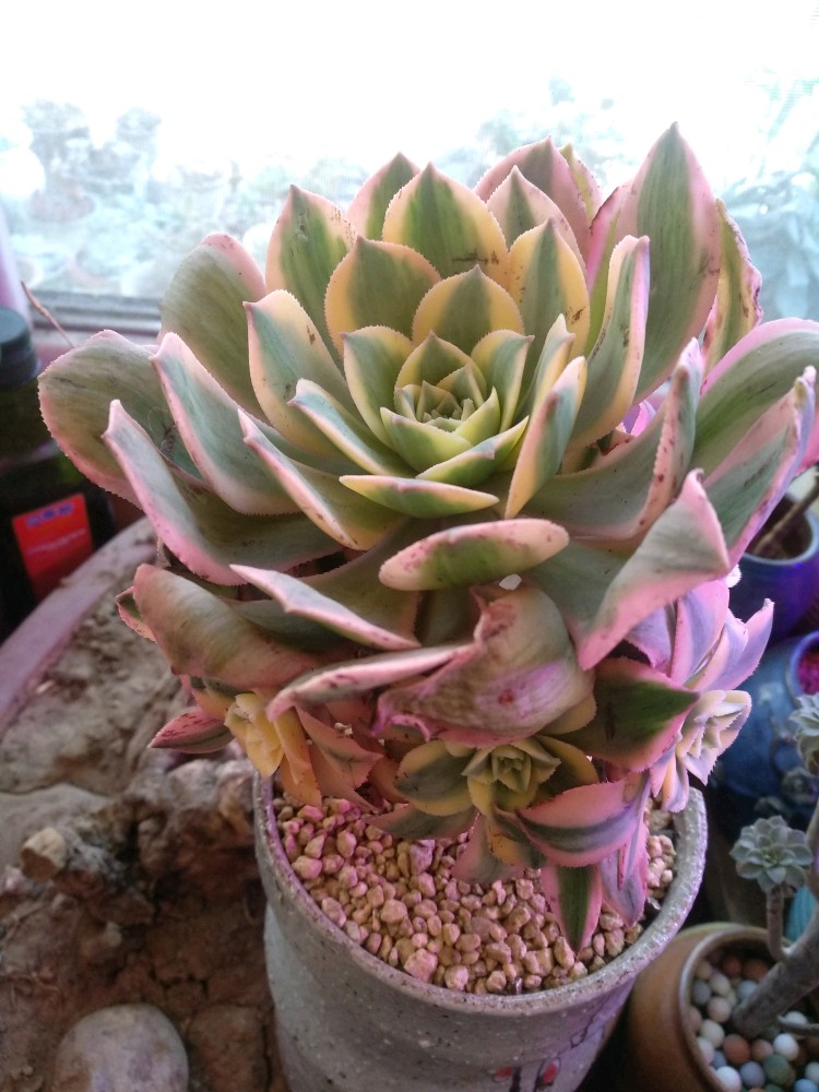 北京最近慢慢入夏了,我的多肉们依旧部分在露养和室内养护的状态。北京的雨雪都很少,能有机会淋下雨,多肉还是很高兴的。看着一场白霉病后,还能努力生长的多肉,就有莫名的感动,多肉的叶片上留下的痕迹,也随着光阴的流逝淡去,有时候我在想多肉的美是这种释然安心。