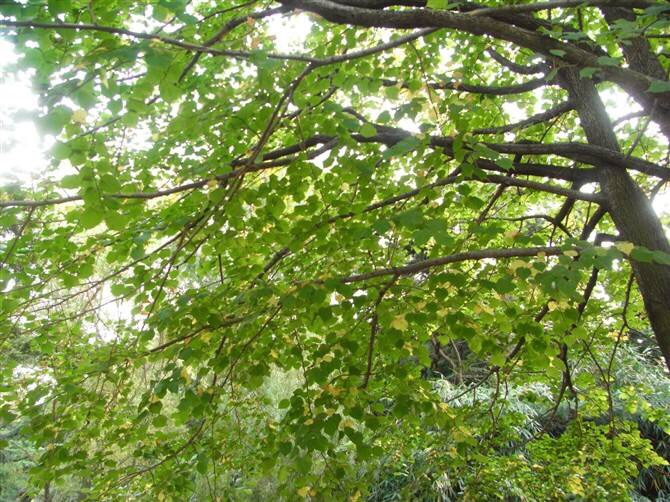 椴树(Tilia tuan Szyszyl.),别名:火绳树、家鹤儿、金桐力树、桐麻、叶上果、叶上果根,为椴树科、椴树属的植物,是中国珍贵的重点保护植物。高20米;树皮灰色,直裂;小枝近秃净,顶芽无毛或有微毛,叶宽卵形,聚伞花序长,无柄,萼片长圆状披针形,果球形,花期7月。 分布于北温带和亚热带。 有经济、食用、医用等多种价值。毛芽椴是其变种。
