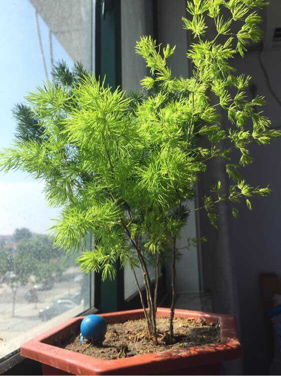 蓬莱松(学名:Asparagus retrofractus L.)别名绣球松、水松、松叶文竹、松叶天门冬、松竹草等,为天门冬科天门冬属多年生灌木状草本。蓬莱松株高30-150cm,茎直立或稍铺散,木质化呈灌木状。具白色肥大肉质根。