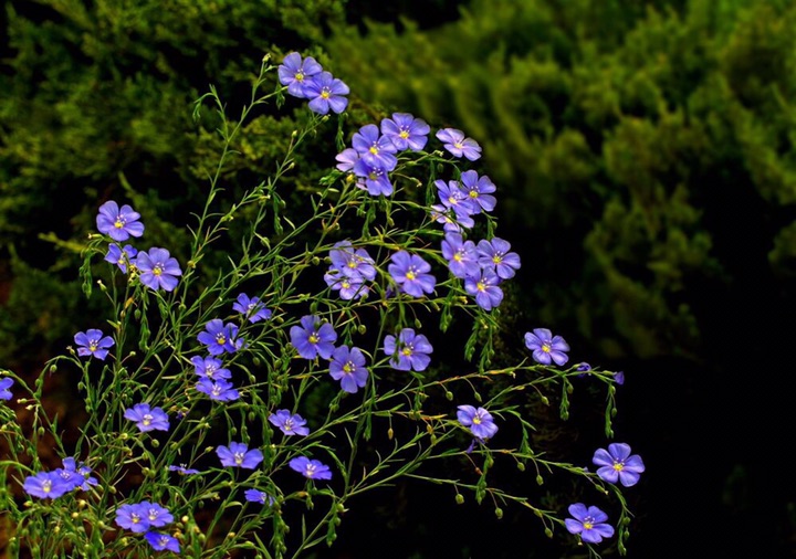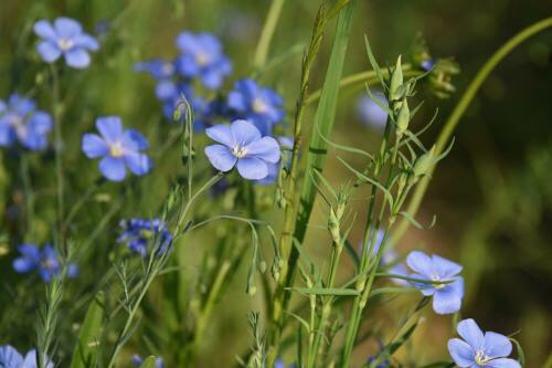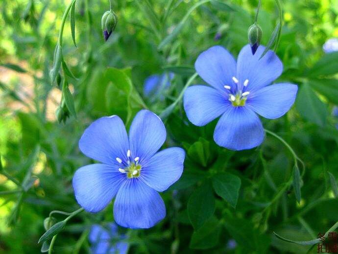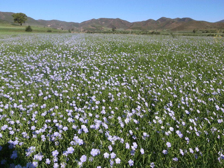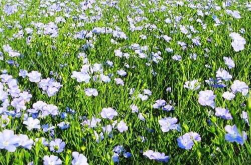 亚麻(学名:Linum usitatissimum L. ):是一年生草本植物,可分成纤维用亚麻、油用亚麻和油纤兼用亚麻三种类型。茎直立,可达1.2米高,上部细软,有蜡质;叶互生,披针状,20-40毫米长,3毫米宽,表面有白霜;花的花瓣5,直径为15-25毫米,蓝色或白色;果实为蒴果,种子扁卵圆形,喜凉爽湿润气候。亚麻是人类最早使用的天然植物纤维,距今已有1万年以上的历史。亚麻是纯天然纤维,由于其具有吸汗、透气性良好和对人体无害等显著特点,越来越被人类所重视。同时,亚麻还是油料作物,亚麻油含多量不饱和脂肪酸,故用来预防高血脂症和动脉粥样硬化。