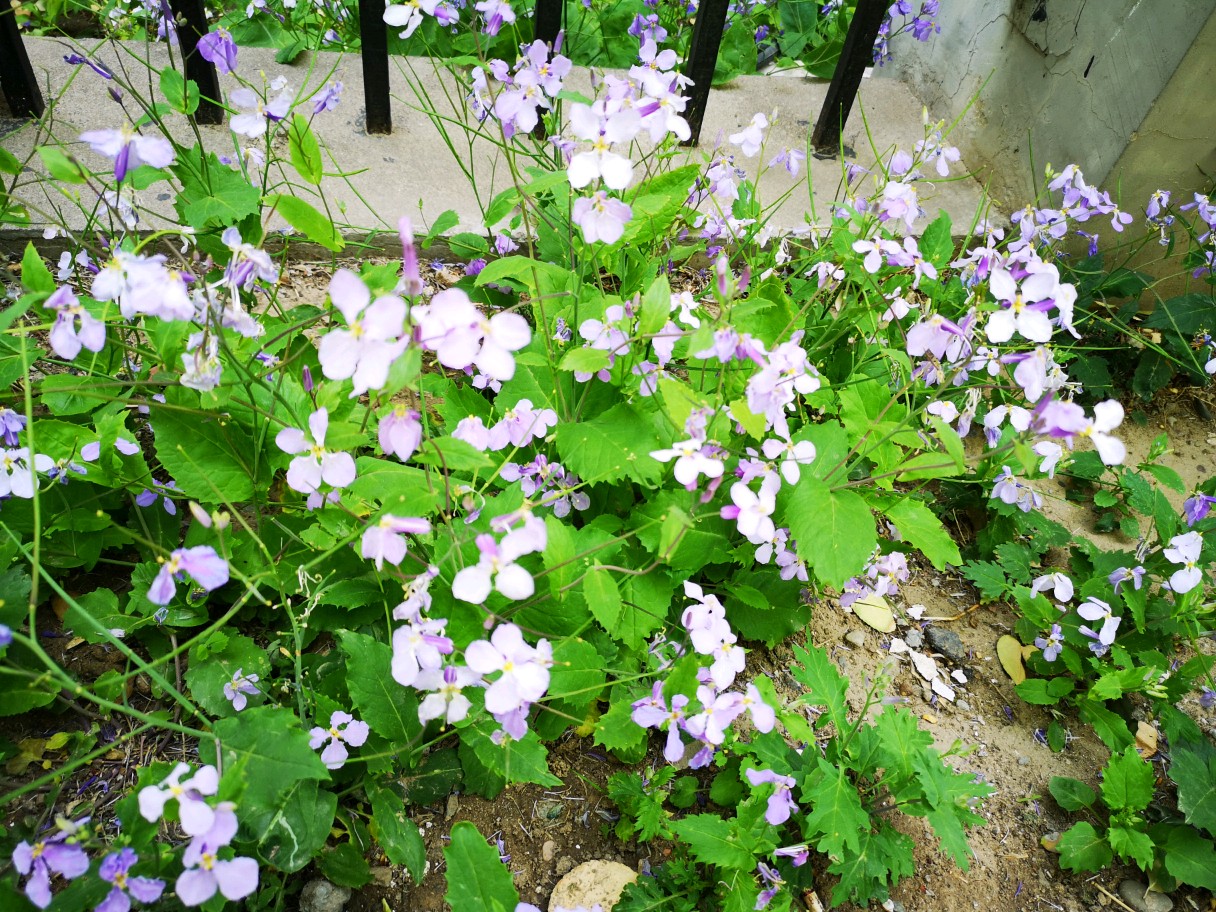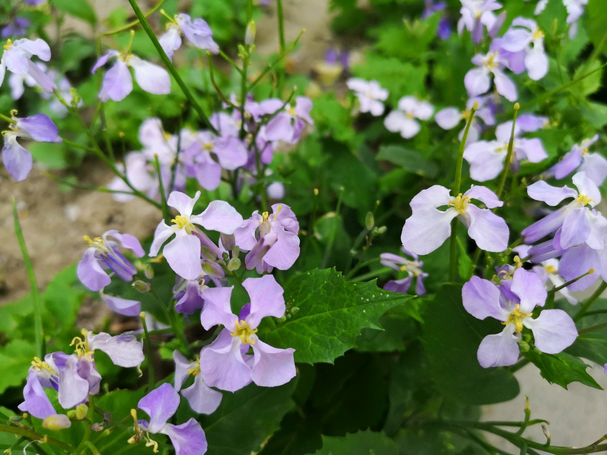 吃过午饭溜达着回家,又遇到了一小片二月兰,和初次相遇一样的,看到她盛开是在农历的三月。