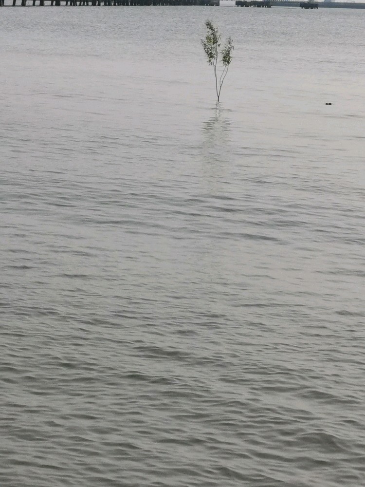 今天去江边玩 看到江水里有棵树 好佩服它顽强的生命力